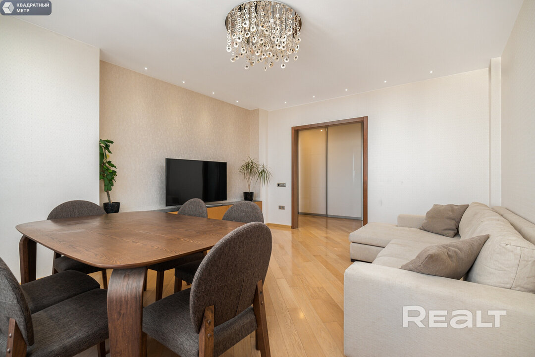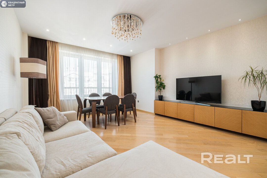 Ну и наконец, самое шикарное предложение — квартира с панорамными окнами на 18-м этаже. Площадь этого жилья составляет 78 квадратных метров. Квартира состоит из отдельной кухни, гостиной и просторной спальни. Ремонт в двушке выполнен по уникальному дизайн-проекту с использованием качественных отделочных материалов. Она полностью укомплектована мебелью и техникой от известных мировых брендов. Кстати, в стоимость уже включено место в подземном паркинге! Стоимость квартиры — 198 тысяч долларов (2510 долларов — за метр).
