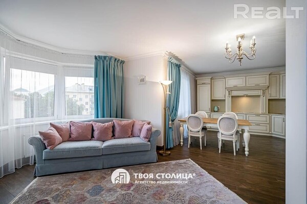 Еще один вариант жилья в «Академическом» − просторная однокомнатная квартира на 4-м этаже. Однушка площадью 56 квадратных метров предлагается с дизайнерским ремонтом в классическом стиле. Жилье полностью укомплектовано мебелью и техникой. Квартира имеет свободную планировку и состоит из общей зоны кухни-гостиной. Спальное место в квартире спрятано за шторой. Также тут имеется гардеробная с продуманной системой хранения. Стоимость квартиры — 160 тысяч долларов (2847 долларов — за метр).