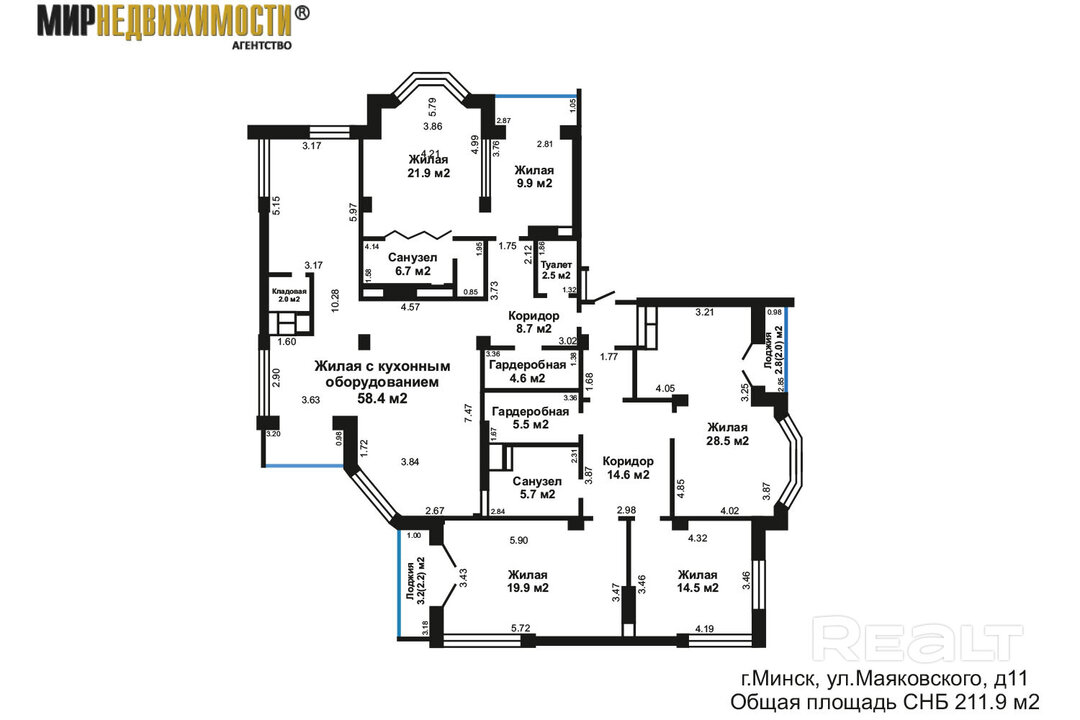 В одном из них — 26-этажной высотке 2014 года на Маяковского, 11 — продается квартира с шестью комнатами. Ее площадь — 211,9 квадратного метра.