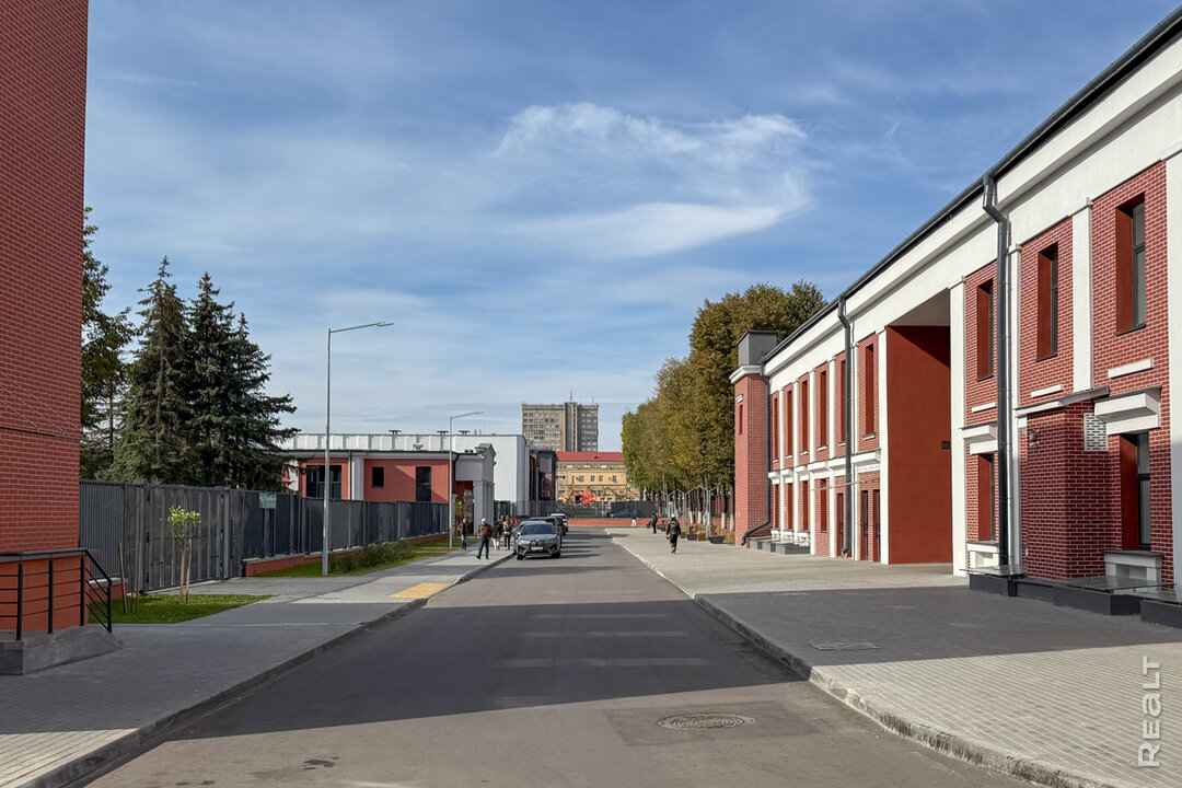 Современные фасады красного цвета видны с Партизанского проспекта. Раньше в этих корпусах был Мотовелозавод, а сейчас здесь — Минский городской технопарк. Это почти 200 тысяч квадратов офисов, складов и лабораторий компаний-резидентов. До конца года строительство технопарка планируют завершить. Кроме технопарка на площадях велозавода создают и небольшой квартал с магазинами и кафе для всех желающих.