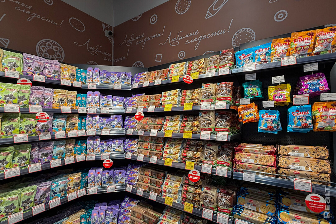 Большинство товаров, представленных в магазине, от «Атлант» — стиральные машины, холодильники, микроволновки, но есть мелкая бытовая техника бренда Aresa. Кроме этого, продаются сковородки и бытовая химия.