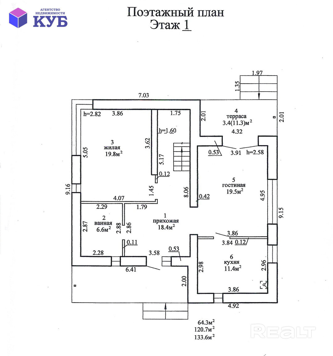 Внизу расположилась гостиная с кухней, а также прихожая, одна жилая комната и санузел.