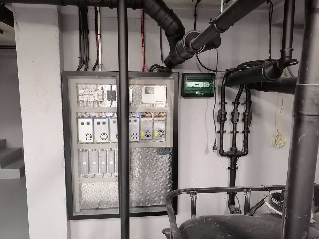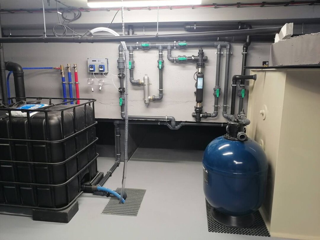 Все оборудование бассейна смонтировано на техническом этаже под СПА блоком. Здесь, как и в котельной, все трубы, краны и провода собраны в технологический натюрморт.