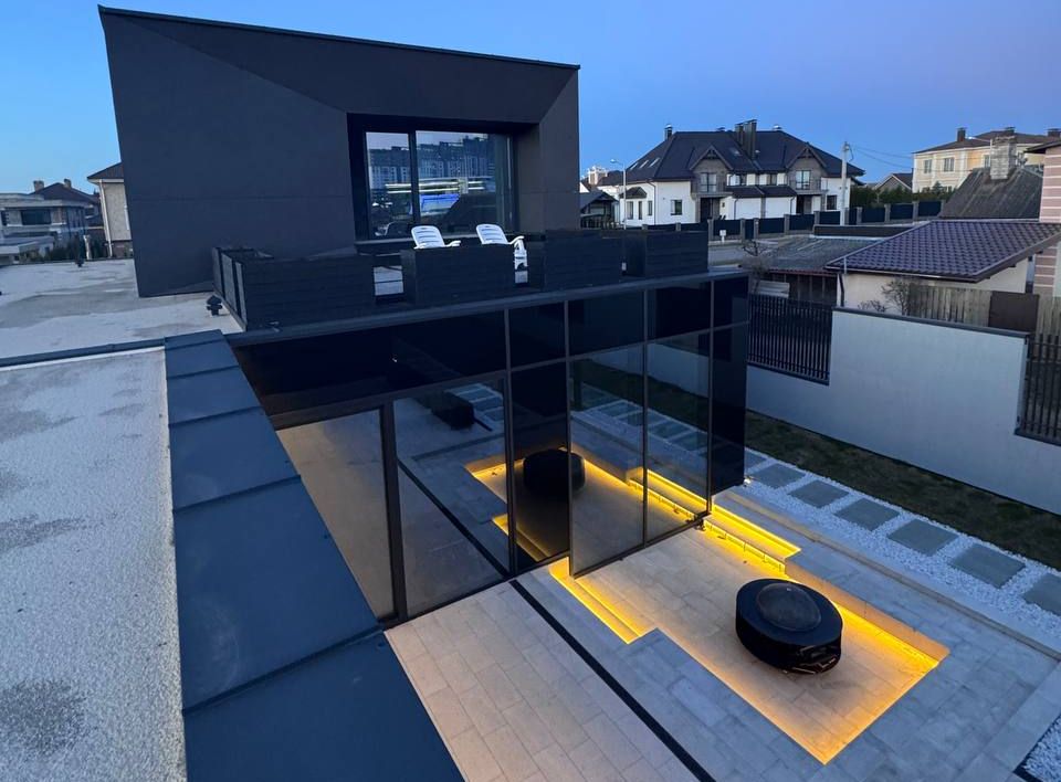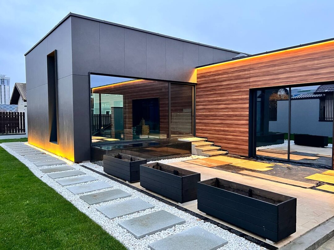 19952В ландшафте элитной застройки Минска появился новый объект, который по уровню оснащения сопоставим с новым пятизвездочным отелем. Этот дом в стиле минимализм выглядит максимально эффектно благодаря оригинальным архитектурным решениям, огромным панорамным окнам и необычной планировке. После появления его в продаже, мы про себя назвали его «минимализм на максималках»: уровень инженерных решений зашкаливает, а столько материалов премиум-класса в отделке мы еще не встречали. Мы съездили на просмотр в Дрозды, пообщались с владельцем и теперь делимся своими впечатлениями.