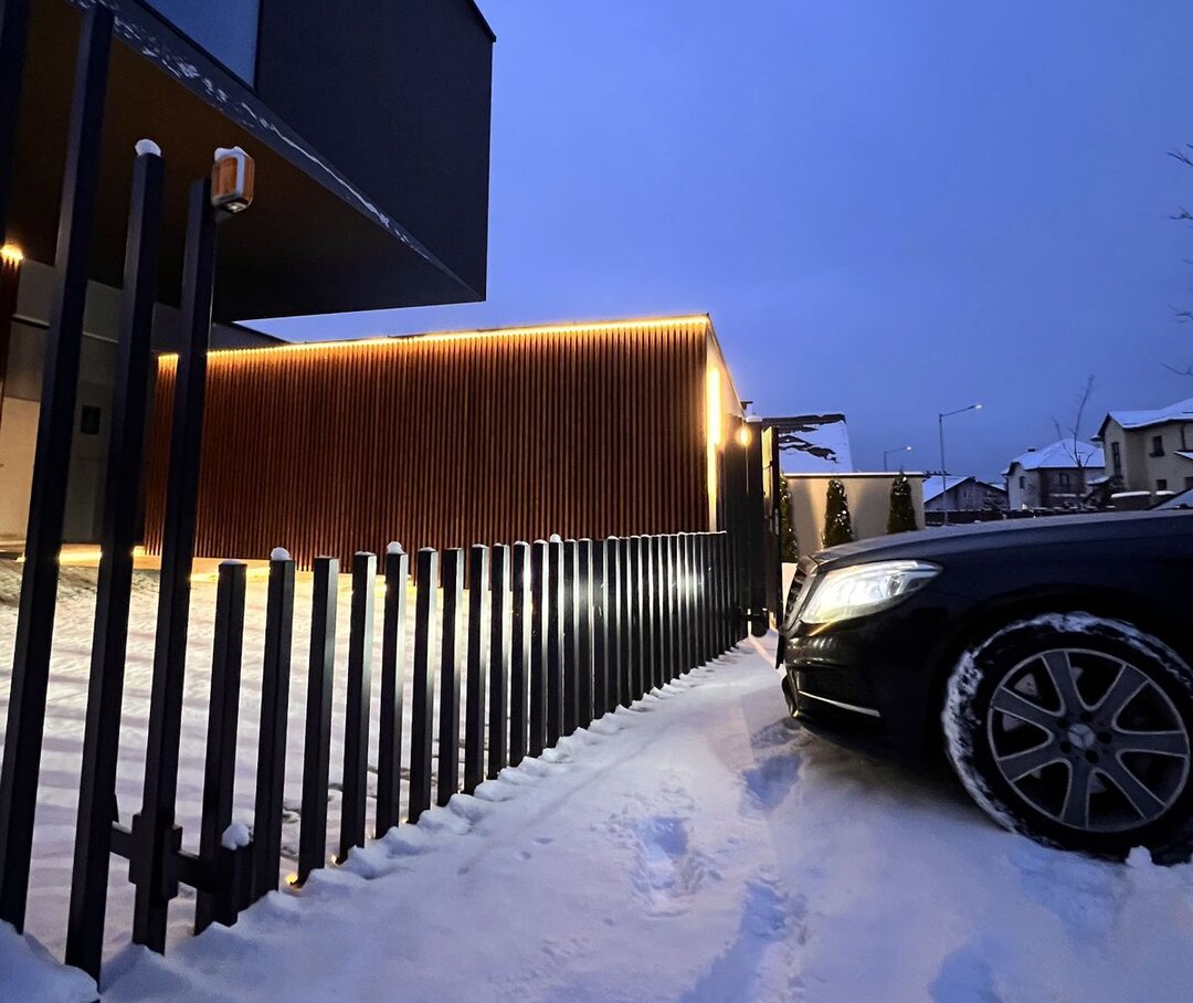 Если форма — это скелет здания, то материалы — его плоть. Понятно, что заказчик и Zrobim Architects не сдерживали себя в рамках эконом-класса, и для фасада выбиралось лучшее, но мы знаем примеры, когда и премиальные материалы не помогают. Здесь же именно тот случай, когда все элементы экстерьера не случайны, подобраны и скомбинированы эстетически и профессионально.