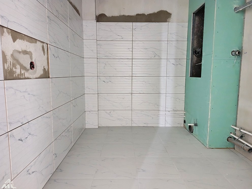 В коридорах, кухнях и санузлах укладывается плитка, красят потолки, скоро в квартирах будут клеить обои. Выполняются также электро- и сантехнические работы, монтаж лифтов.