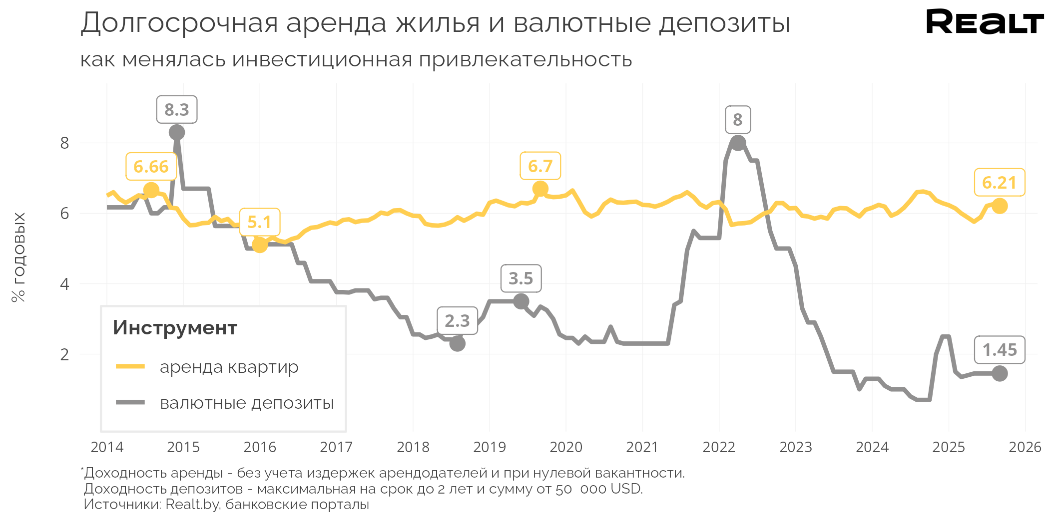 Инвестиционная привлекательность сдачи квартир в долгосрочную аренду сохраняется на высоком уровне. Как минимум потому, что сегодня аренда позволяет заработать в 4 раза больше, чем лучшие депозиты в валюте. Кроме того, покупка квартиры и сдача ее в аренду продолжает оставаться наиболее понятным способом не только сохранения, но и увеличения средств.