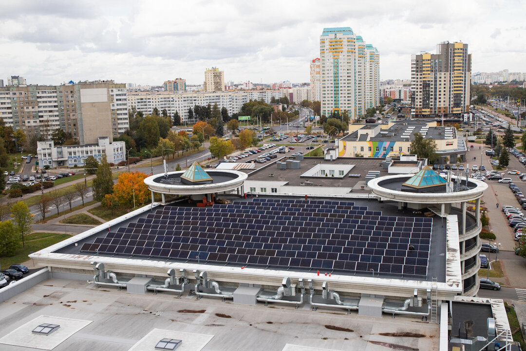 На крыше известного минского ТЦ появилась солнечная электростанция. Узнали, зачем