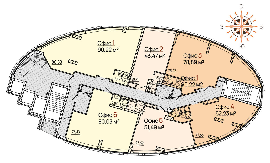 Офисы в БЦ предлагаются как на типовых этажах, так и VIP-пентхаусы с собственными террасами.