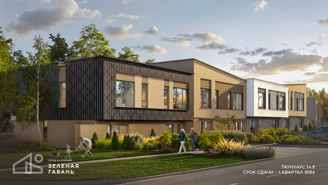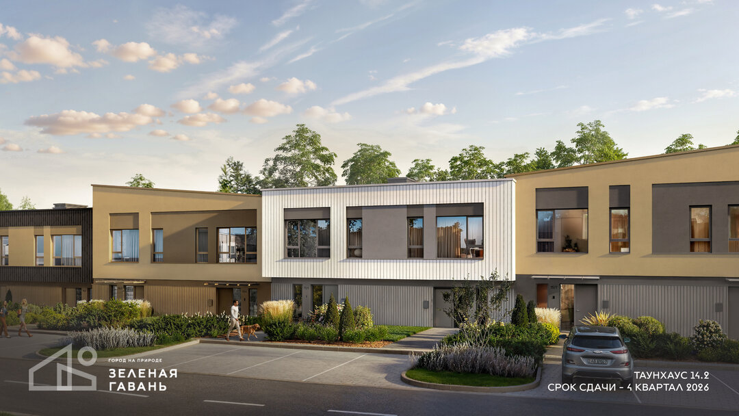 Зеленая гавань отличается разнообразной и нешаблонной архитектурой. Так Гольф-квартал будет застроен таунхаусами и ситихаусами, а естественными границами между разными форматами жилья станут «живые» зеленые коридоры.