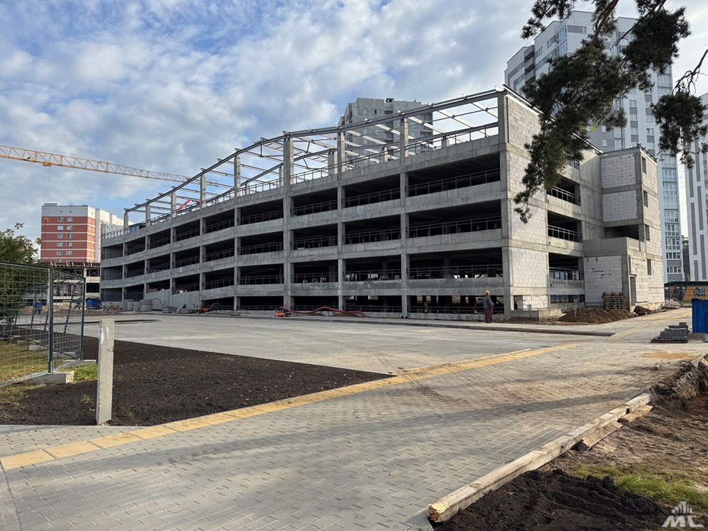 Из трех паркингов, каждый на 292 машино/места, один завершен полностью, на втором необходимо выполнить волнообразную кровлю и внутренние работы.
