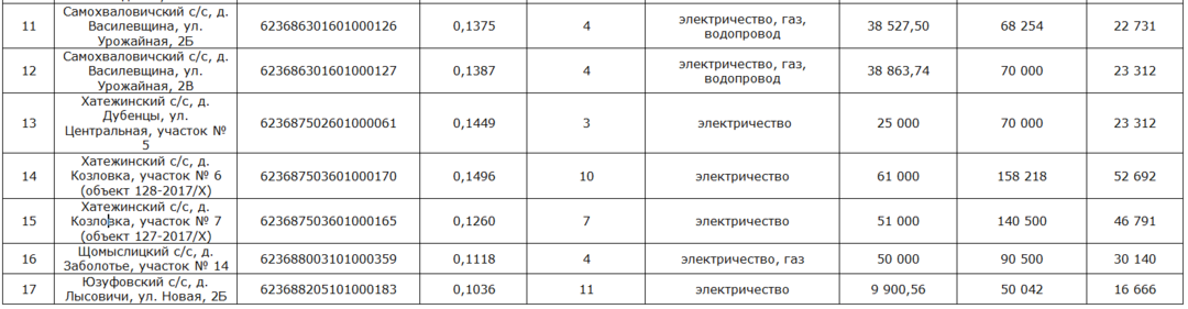 Хатежинский сельсовет выставлял на аукцион 3 участка в д. Козловка и д. Дубенцы. На участок № 6 в д. Козловка поступило 10 заявлений. Он насчитывает 15 соток и оснащен электричеством. При стартовой цене 61 000 рублей лот продали за 158 218 рублей, или 52 692 доллара. На участок № 7 в Козловке подали 7 заявок. На земельный надел в Дубенцах претендовали 3 человека.