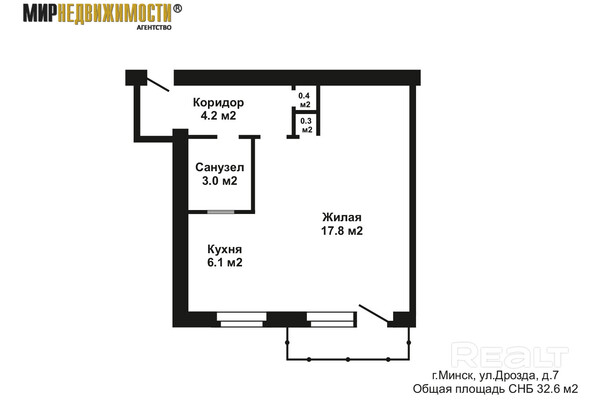 Общая площадь квартиры — 28 квадратов, жилая — 17, кухня — 6 метров. Санузел совмещенный. В жилой комнате лежит паркет елочкой. Но покупателям надо быть готовым к тому, что в квартире придется делать ремонт.