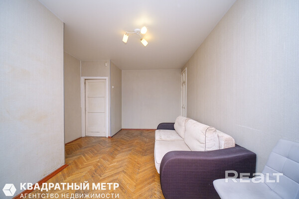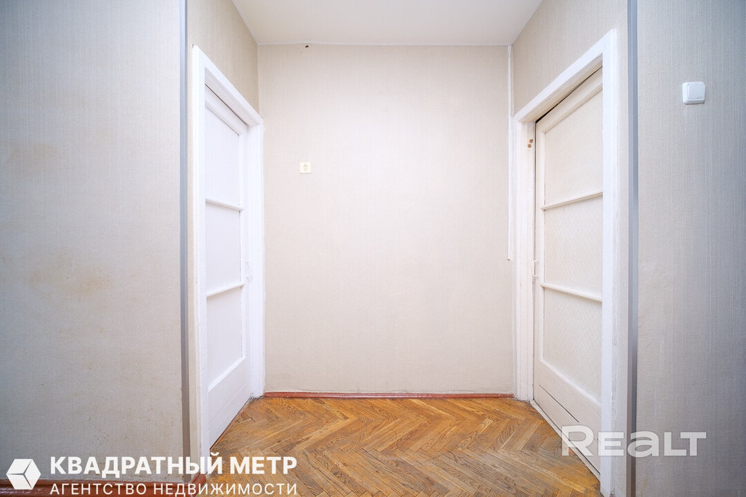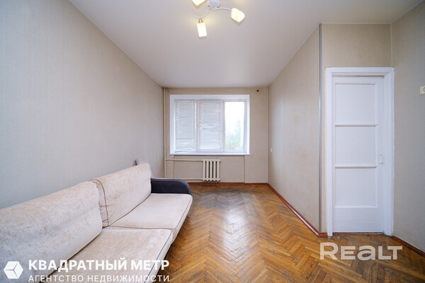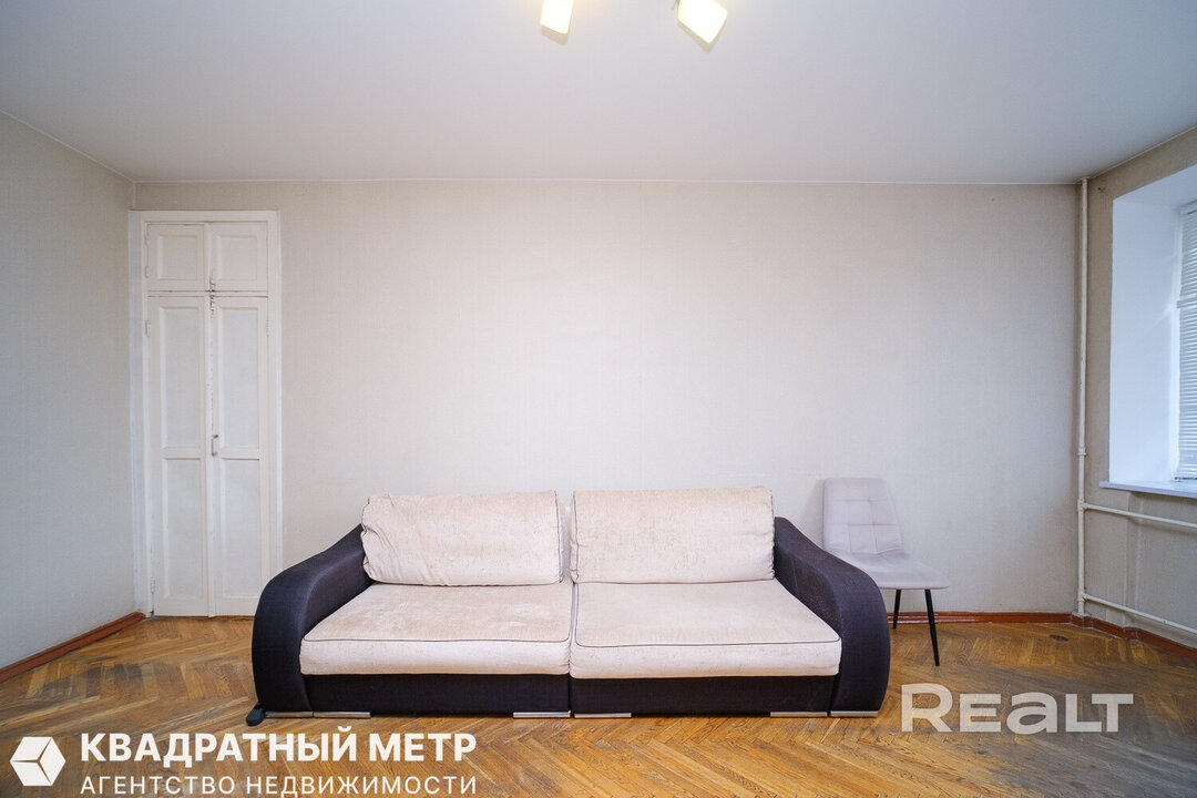 Последний вариант нашей подборки — двухкомнатная квартира на Козлова, 25. Пятый этаж пятиэтажного дома 1962 года постройки. До станции метро «Площадь Якуба Коласа» — около полутора километра. Чуть ближе до «Площади Победы».