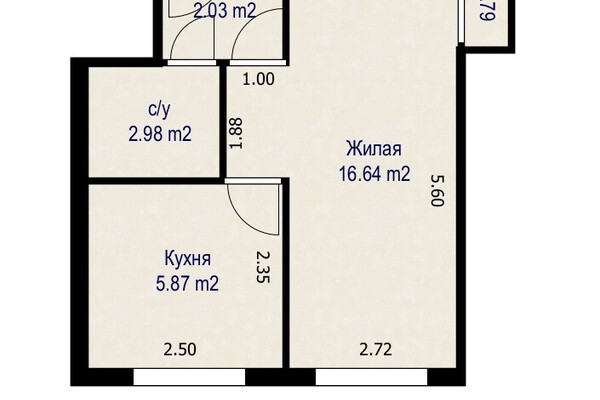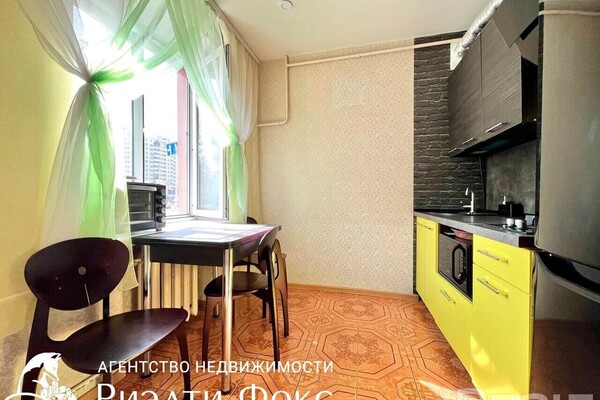 Общая площадь однушки — 27 квадратов, жилая — 21. Между кухней и гостиной нет двери, фактически это единое пространство. Из техники в кухне остается газовая варочная панель, холодильник, вытяжка. В совмещенном санузле — стиральная машина и бойлер. В гостиной — телевизор. Из мебели — раскладной диван и встроенный шкаф-купе.