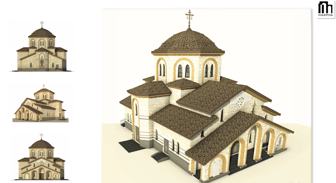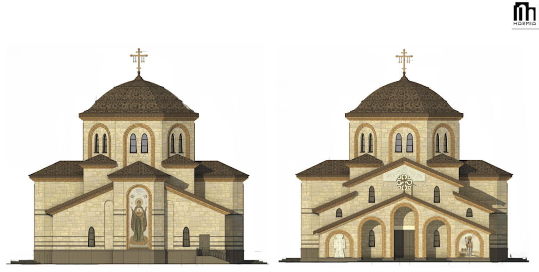 Планируемое здание будет иметь прямоугольную форму с пристроенными с трех сторон объемами апсиды, южного и северного боковых выходов. Главный вход будет организован в виде аркадной галереи, перекрытой двухскатной кровлей. Центральная часть храма спроектирована как четырехгранник, переходящий в восьмигранный световой барабан, завершенный плоским куполом. Высота храма от уровня чистого пола первого этажа до верха креста составит 21 метр.