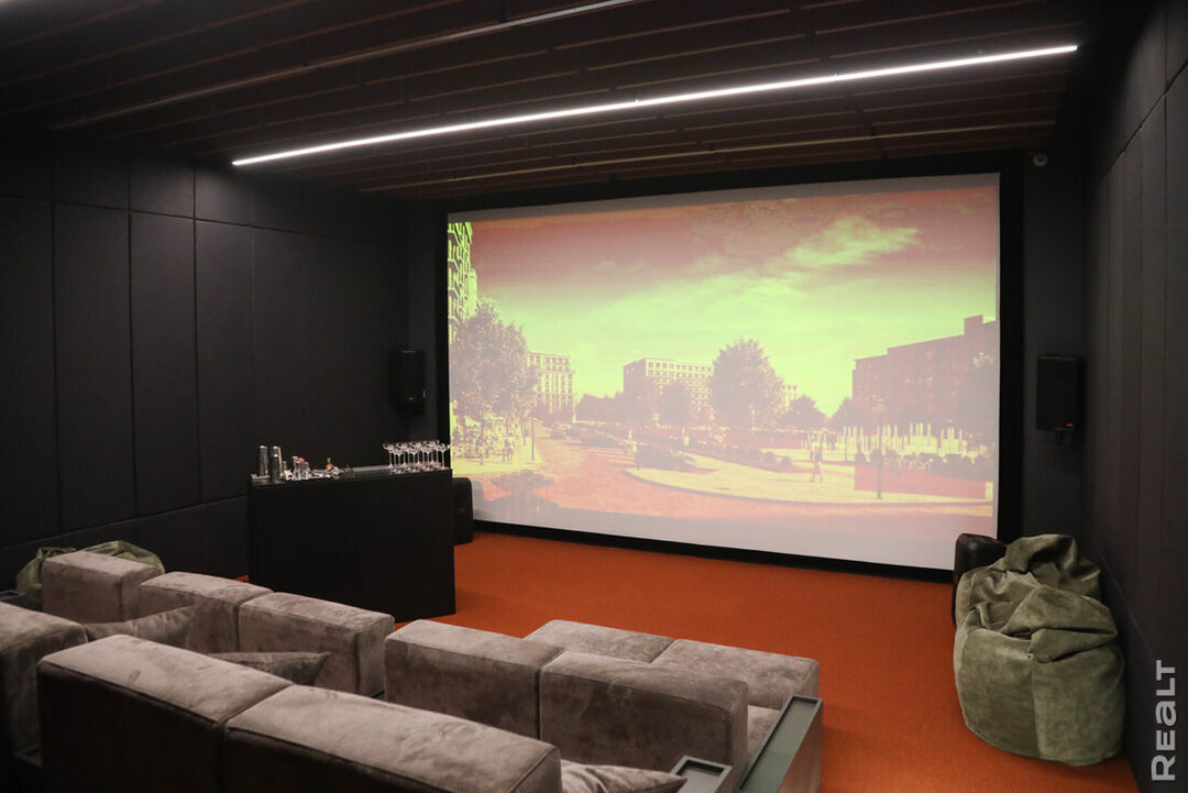 Под клуб отдали весь первый этаж одной из новостроек. Здесь обустроили кинотеатр на 18 мест с Full HD проектором, комнату для проведения праздников. Выделили место и для тренажерной. Наличие такого места само по себе вызывает эффект «вау», так тут еще сделали две финские сауны с раздевалками и душевыми.