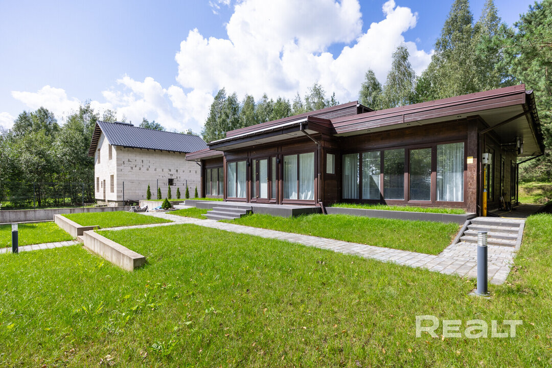 4637В Колодищах рядом с лесом выставлен на продажу современный дом. Практически все стены тут в панорамных окнах. Жилье готово к проживанию: обставлено премиальной техникой и мебелью. Сколько за него просят?
