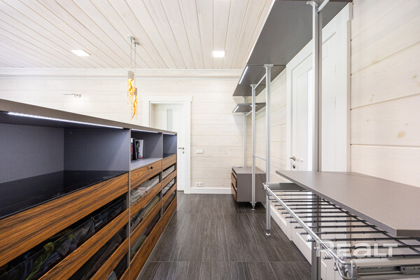 Одноэтажный дом в Колодищах построили в 2018 году из клееного бруса сосны 240×262 мм с пропиткой lmprogniergtund. Его площадь — 200,8 м². Постоянно здесь никто не жил.