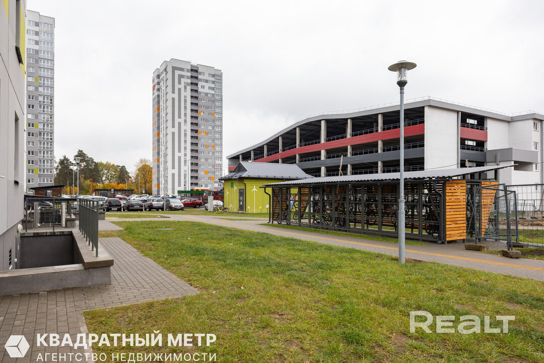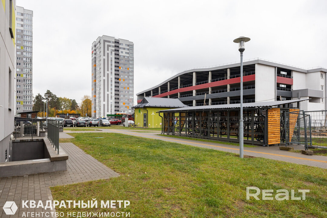 В объявлении также отмечается благоустроенная территория — возле новостроек высажены декоративные кустарники, установлены зарядные станции для электромобилей, детские площадки и велобоксы. В шаговой доступности находится школа, детский сад, поликлиника, магазины со всем необходимым, остановки общественного транспорта.