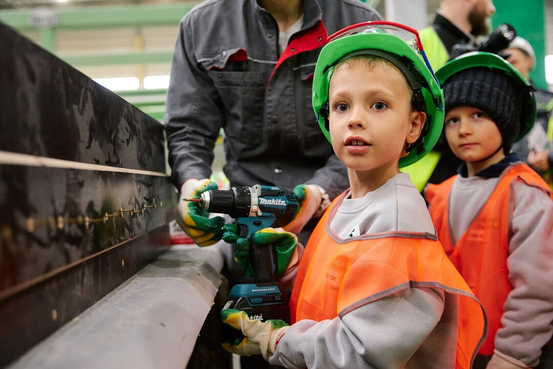 684Предприятие «Современные бетонные конструкции» вновь открыло свои двери для самых юных гостей — детей сотрудников. Более 120 ребят пришли на завод вместе с папами, чтобы отметить День отца и своими глазами увидеть, где трудятся их герои, а также попробовать себя в рабочих профессиях.