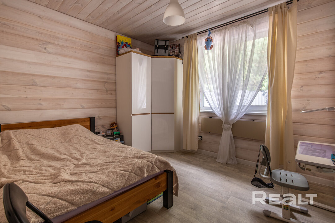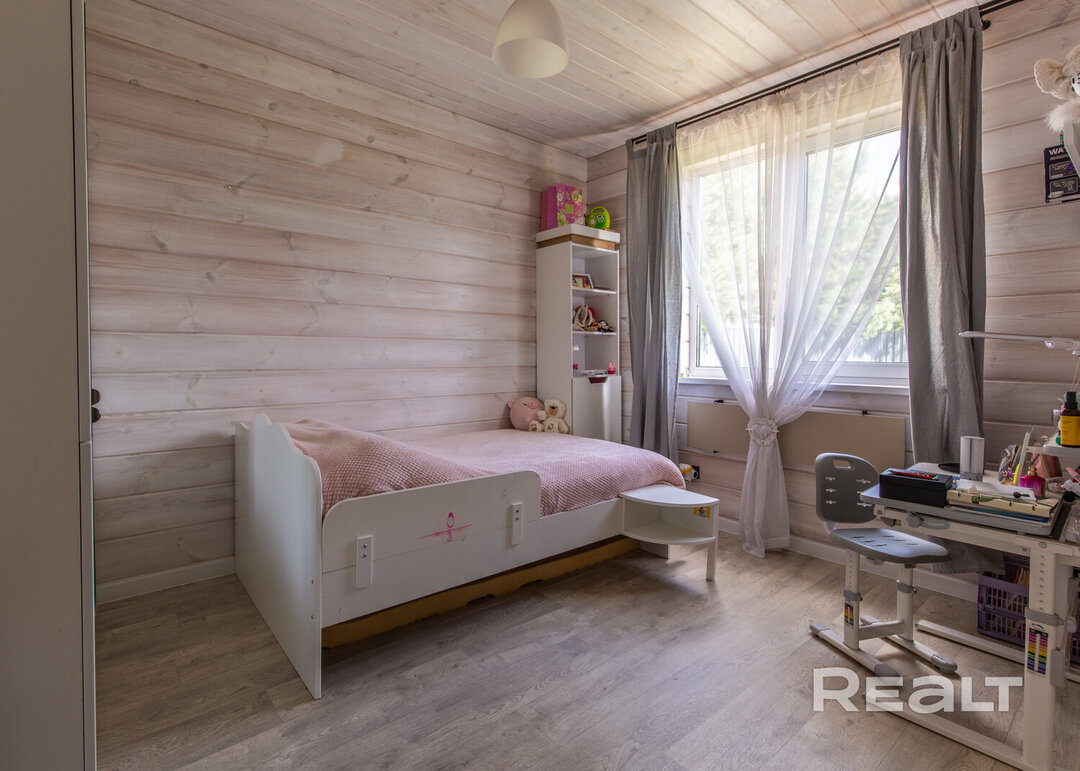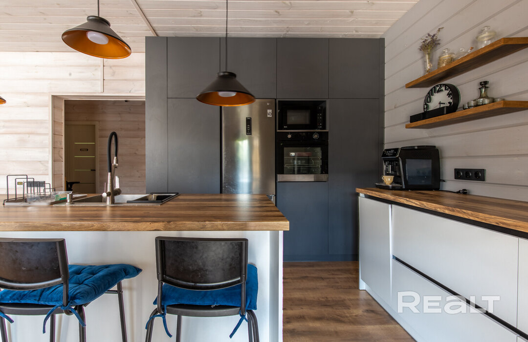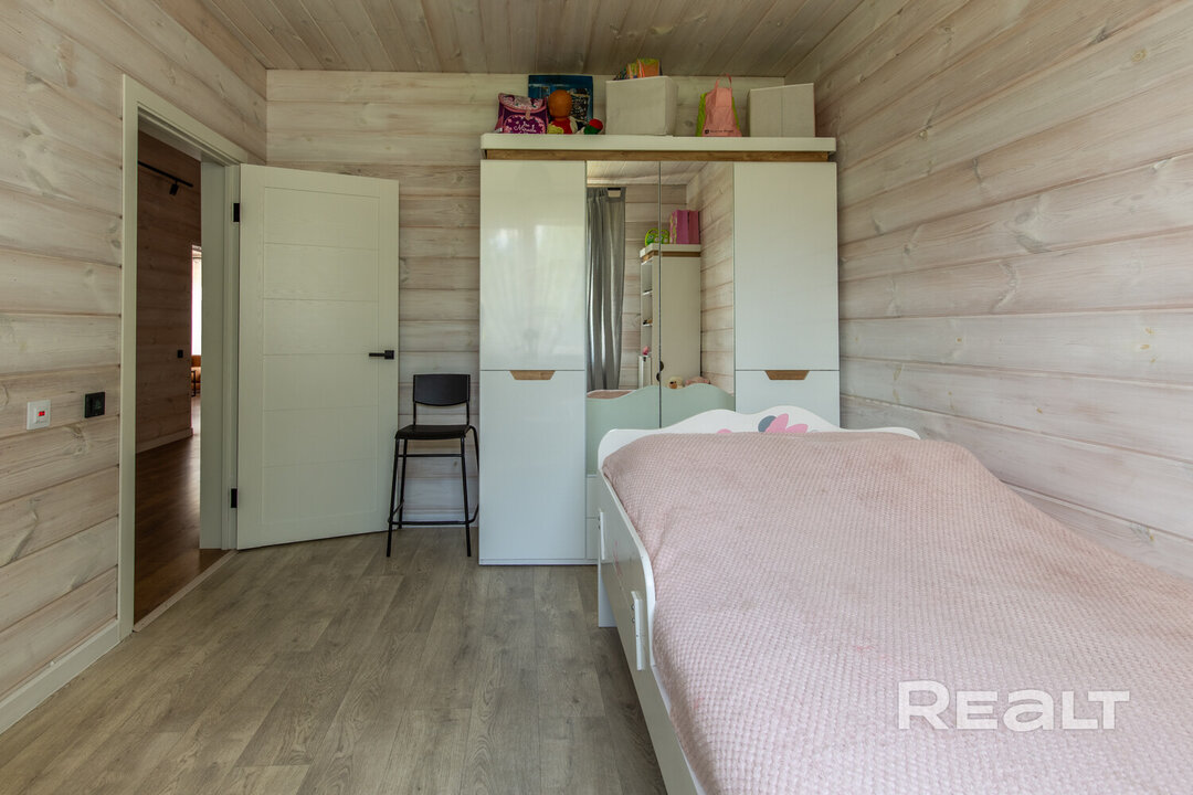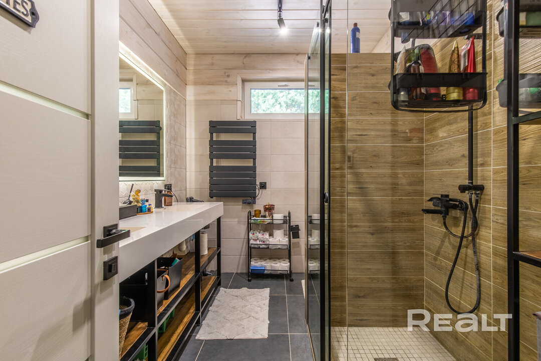 Деревня Щербины находится за Заславлем и в 23 км от Минска. Там на продажу выставлен бревенчатый дом 2022 года постройки. Его площадь — 118,5 м². Жилье возводили по скандинавской технологии. Фундамент — железобетонный, на сваях (150 см). Крышу устелили металлочерепицей. Пол, потолок и стены утеплены. Снаружи дом обшит сайдингом.