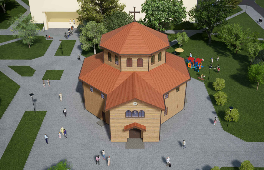 Сейчас концепция изменилась кардинально: выбран иной участок и обновлен дизайн самого храма. Церковь расположится вдоль пешеходной дорожки, соединяющей поликлинику № 8 и ближайшую автобусную остановку «Универсам Первомайский».