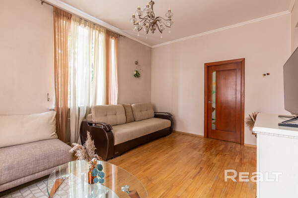 Двухкомнатная квартира на втором этаже пятиэтажного дома по адресу Мясникова, 35. Недалеко от дома — станции всех трех веток метро «Площадь Ленина», «Площадь Богушевича и «Немига». До последней придется подъехать на транспорте пару остановок, а остальные находятся в шаговой доступности.