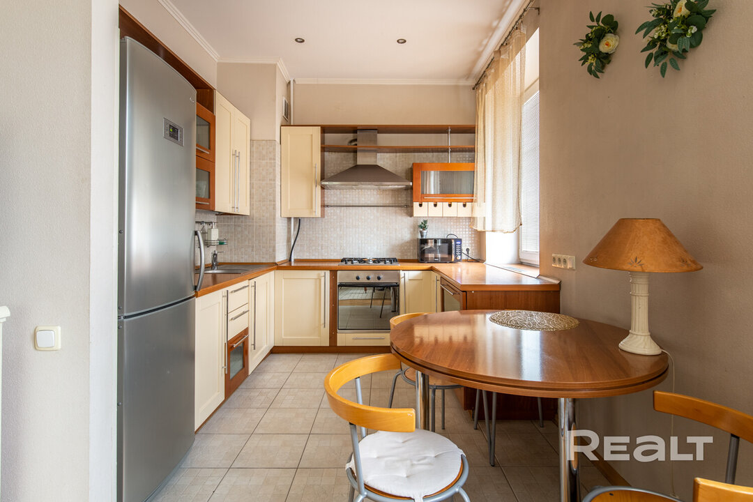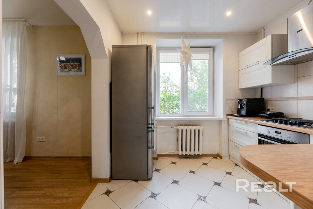 Один из самых дешевых вариантов — однокомнатная квартира на проспекте Независимости, 100, буквально в паре минут от станции метро «Московская». Ремонт здесь, пожалуй, самый современный, если сравнивать с другими квартирами в сталинках в этой подборке. Это четырехэтажная сталинка, в 2024 году в которой провели капремонт.