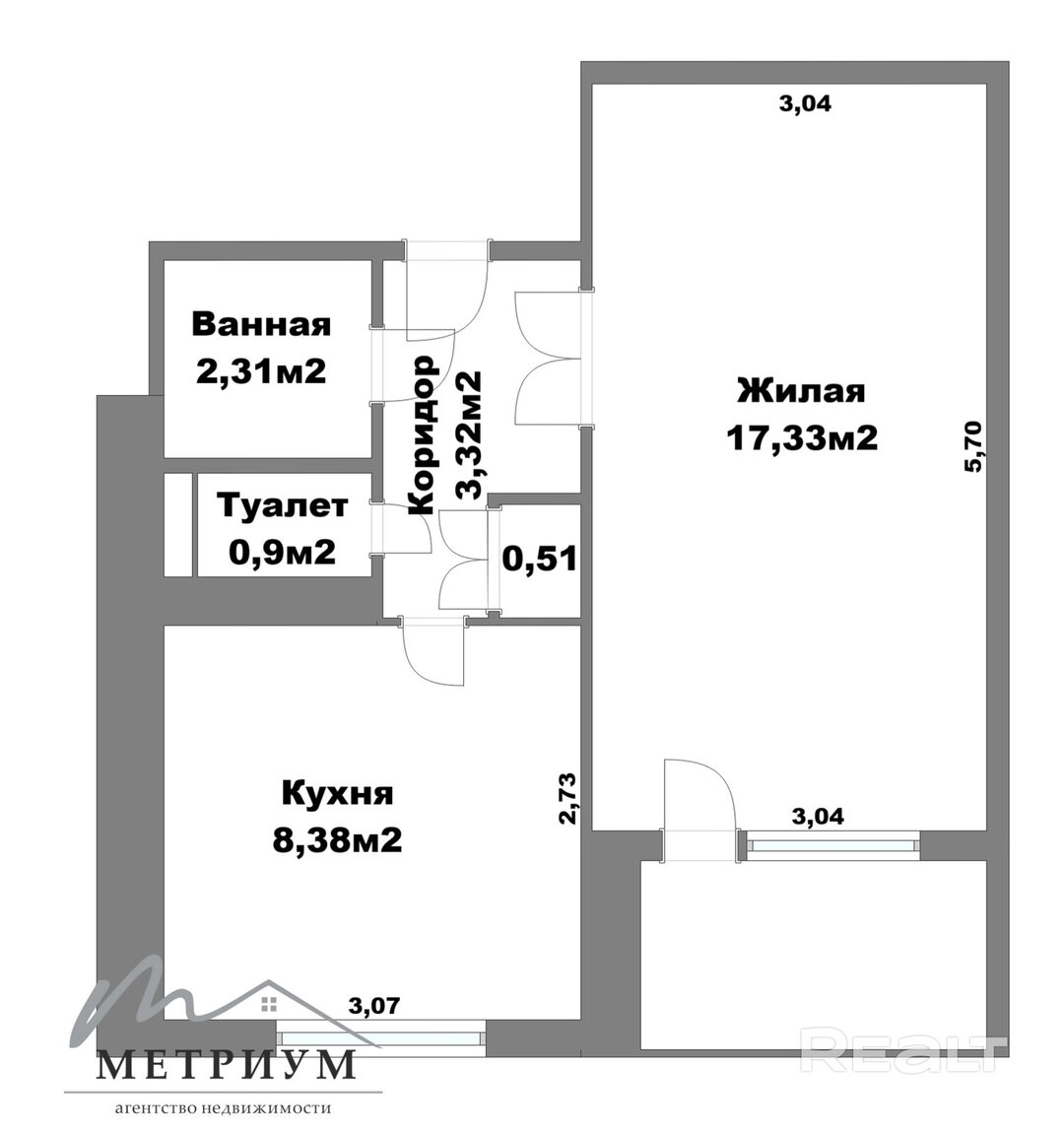 Квартира стоит 65 тысяч долларов, а метр — 1 935 долларов.
