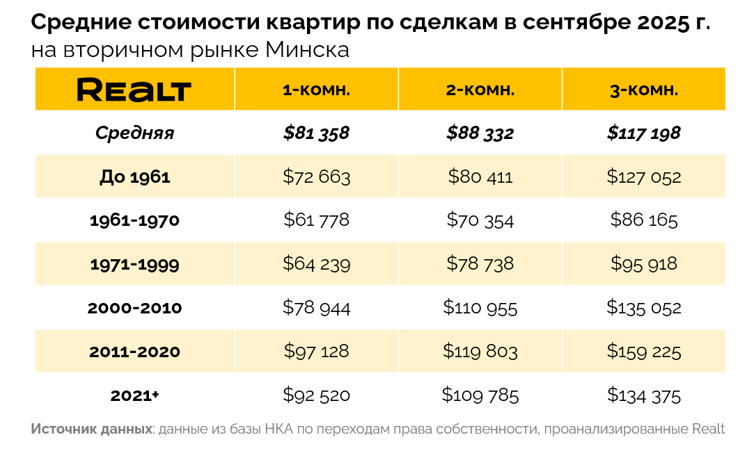 397Осень 2025 началась с просадки продаж квартир на вторичке Минска, но рост цен сохранился. В результате единички по цене максимально приблизились к двушкам, а за разницу в цене по сравнению с началом года, можно купить квартиру в регионе. Эти и другие интересные факты сделок осени — далее в материале.
