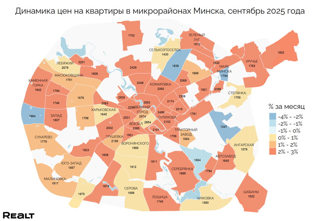14396Осень 2025 началась с просадки продаж квартир на вторичке Минска, но рост цен сохранился. В результате единички по цене максимально приблизились к двушкам, а за разницу в цене по сравнению с началом года, можно купить квартиру в регионе. Эти и другие интересные факты сделок осени — далее в материале.