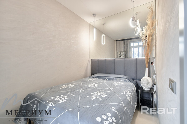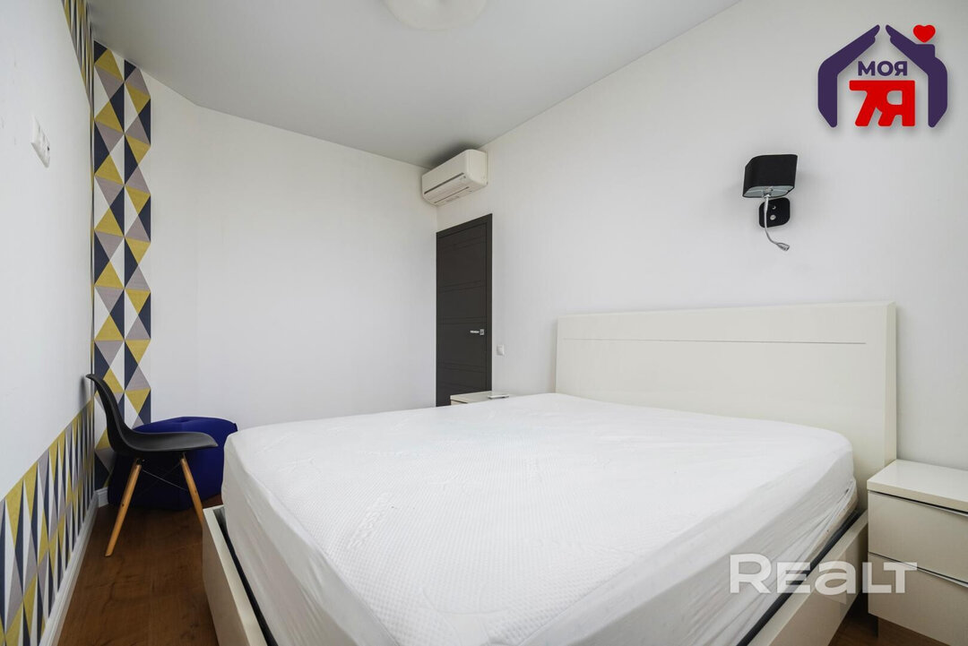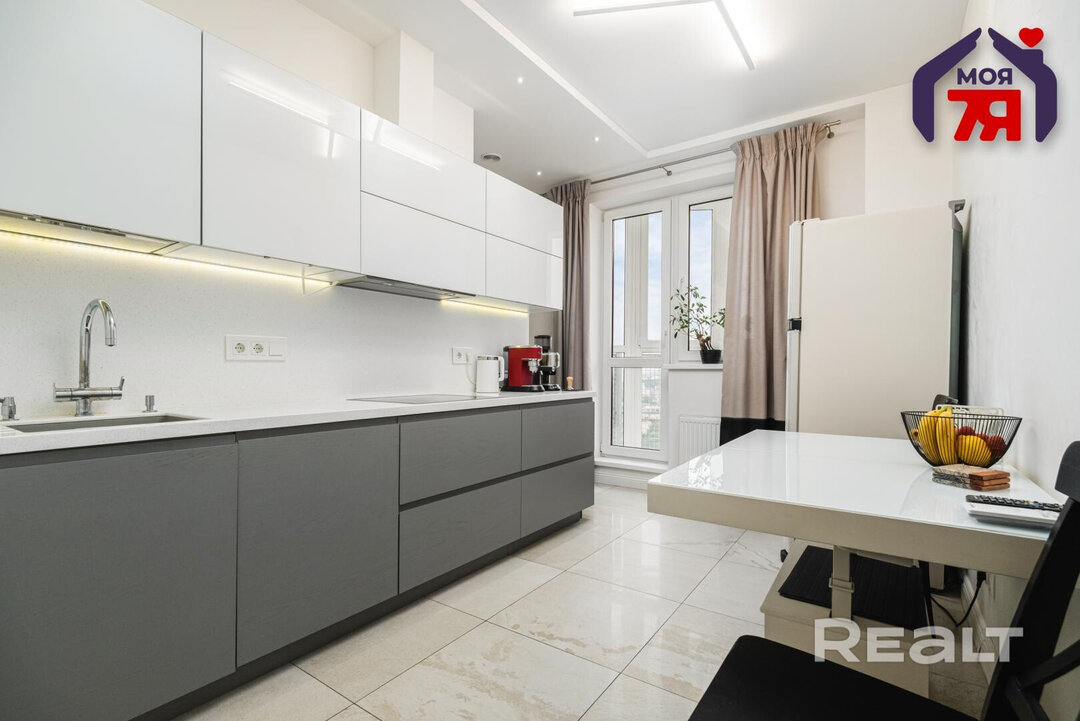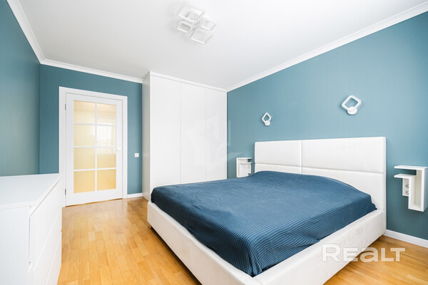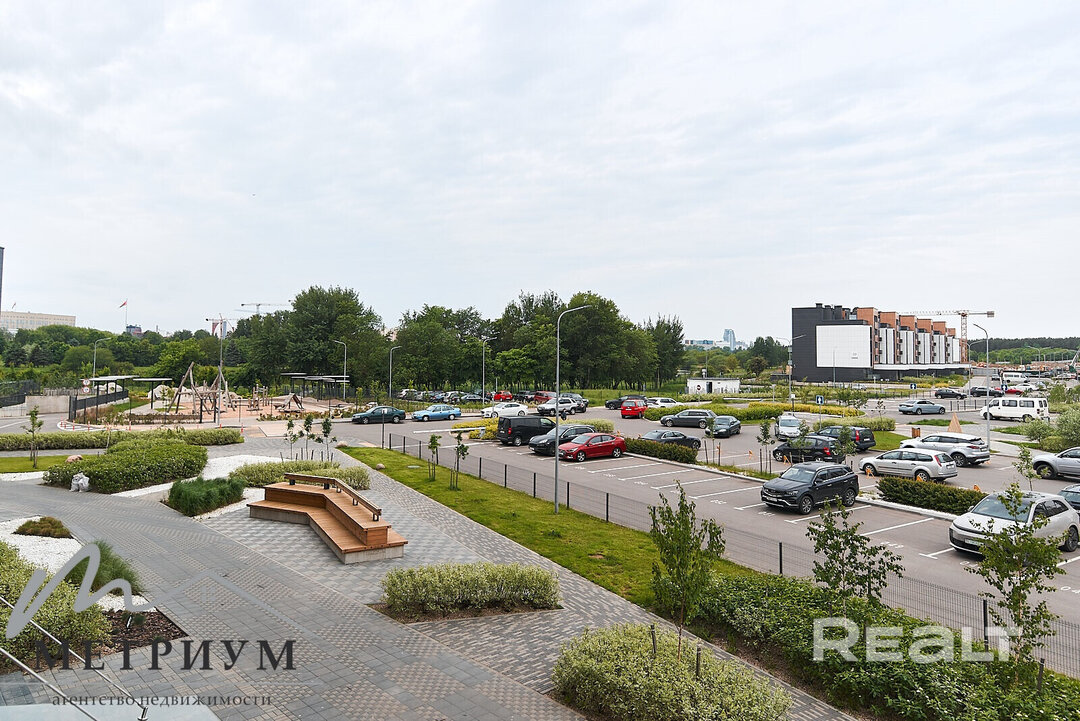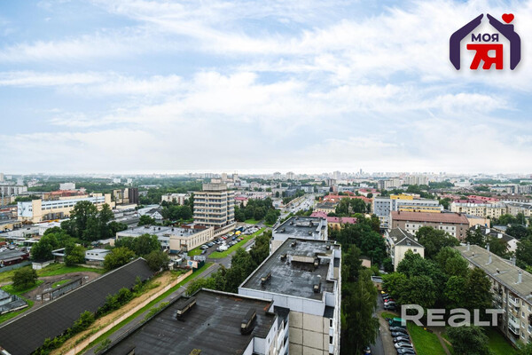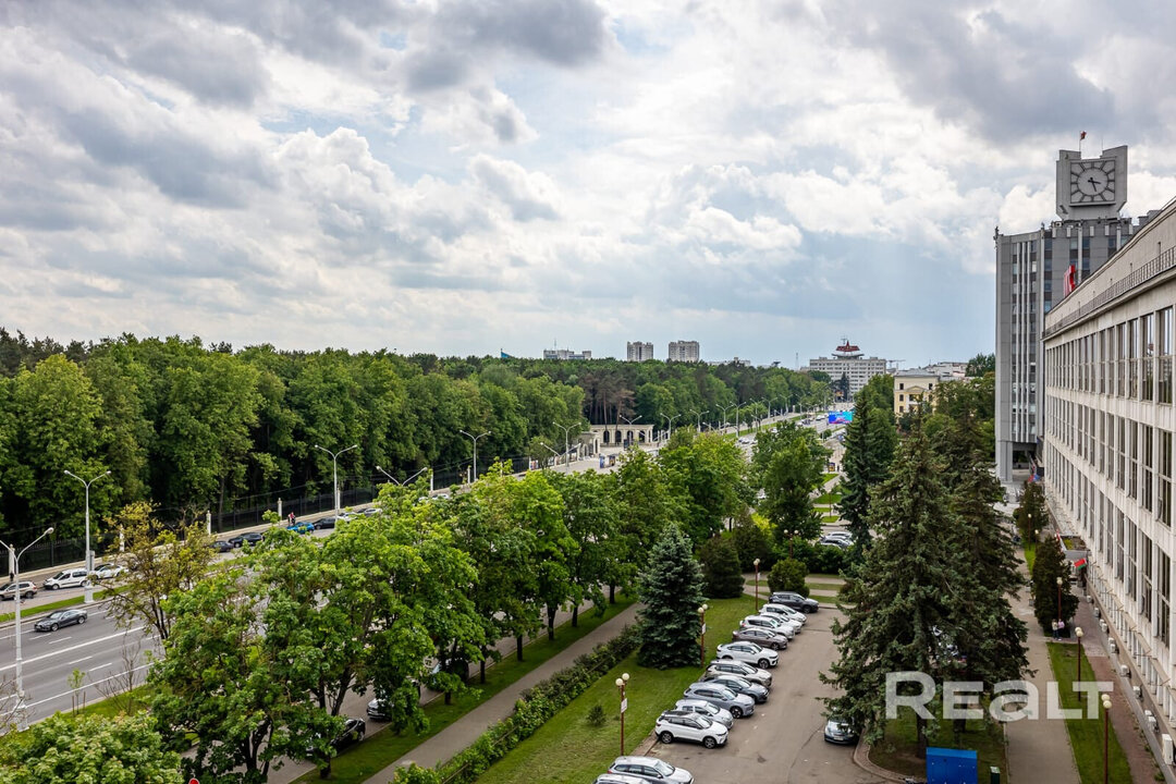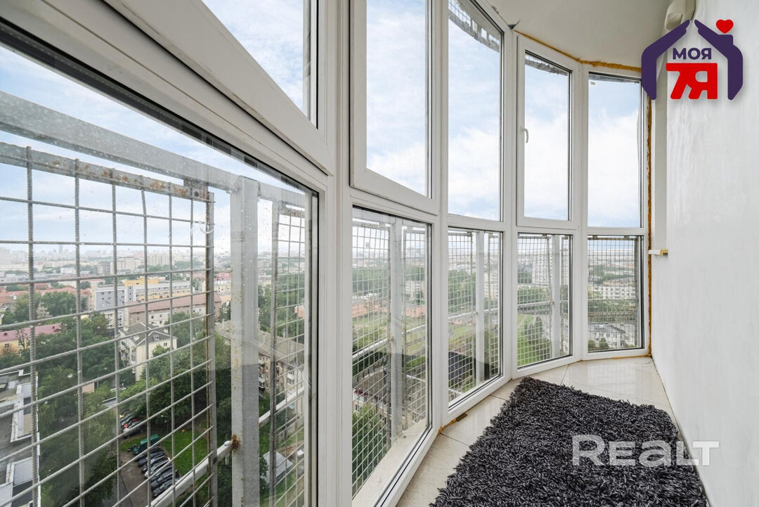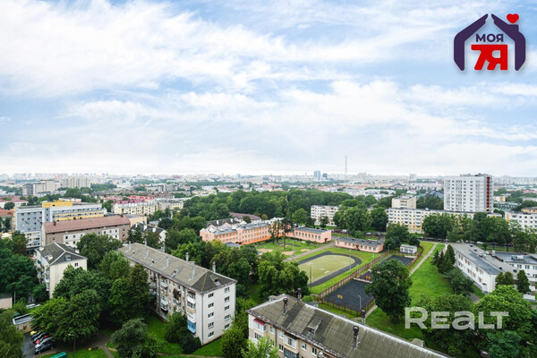 Двухкомнатная квартира на 16-м этаже 19-этажной новостройки по адресу Платонова, 23. Недалеко от дома есть остановки трамваем и автобусов, а до станций метро «Площадь Победы» и «Площадь Якуба Коласа» минут 10−15 пешком.