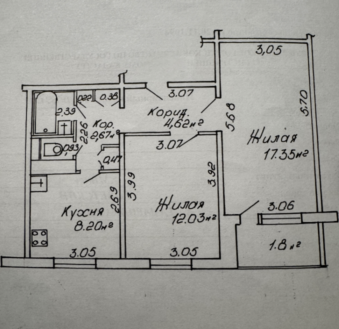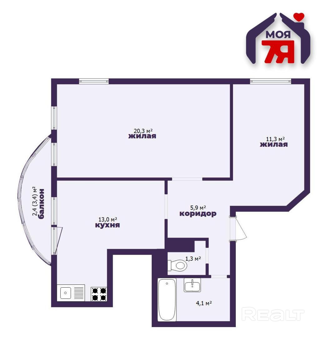 В квартире две изолированные комнаты, раздельный санузел с установленной ванной. В гостиной есть выход на балкон.