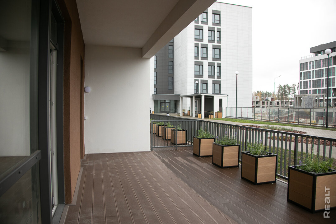 Самое необычное жилье здесь — пентхаусы с мастер-спальнями (спальня + санузел + гардеробная) и впечатляющими опоясывающими балконами (по 1 в каждом подъезде) и квартиры с террасами (по 7 в каждом доме). Здесь можно обустраивать мини-садики, делать зоны для отдыха, встреч закатов и рассветов. Высадить садовую землянику, поставить кресло-грушу, украсить территорию к празднику — балконы и террасы вдохновляют на десятки творческих идей. Еще один плюс: виды здесь не будут загораживаться чужими окнами, застройщик предусмотрел достаточные расстояния для комфорта каждого жителя.