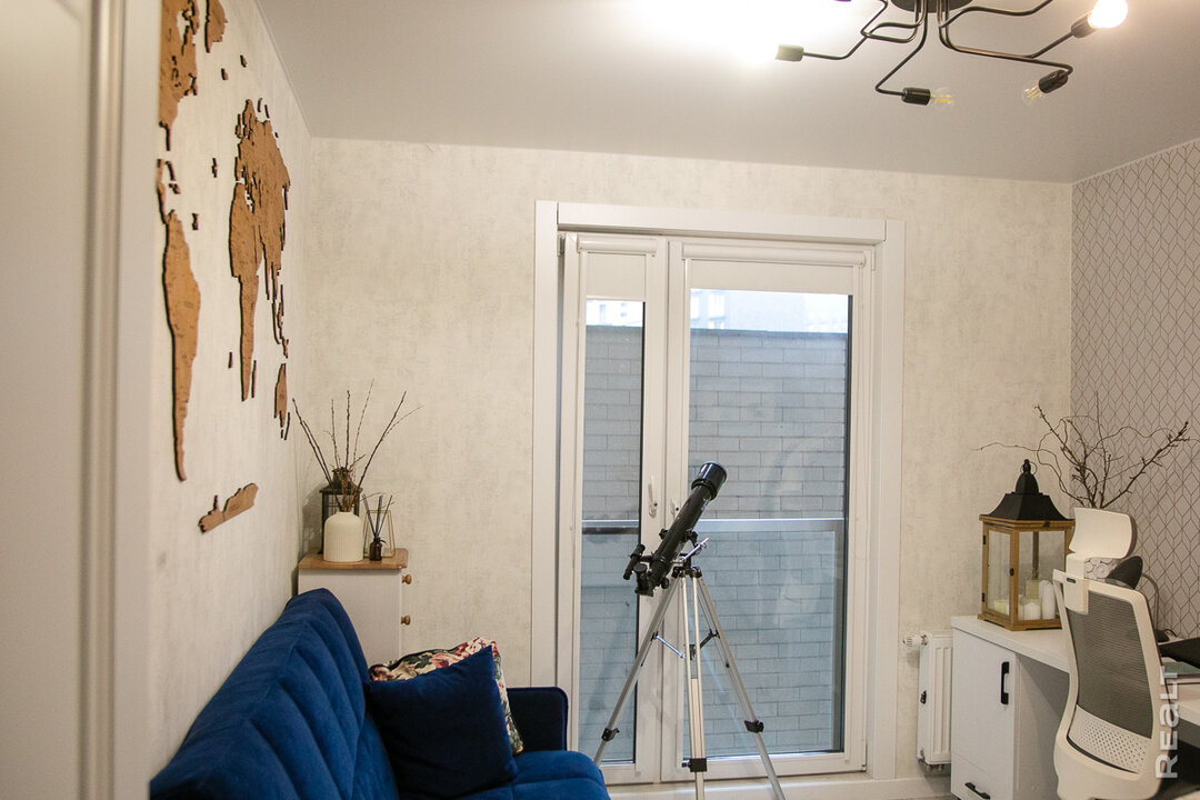 Напротив спальни находится кабинет. Его теперь занимает старший сын Дианы. Детскую комнату получилось изолировать, отобрав часть квадратов у кухни-гостиной. На нее было рассчитано 45 квадратов.