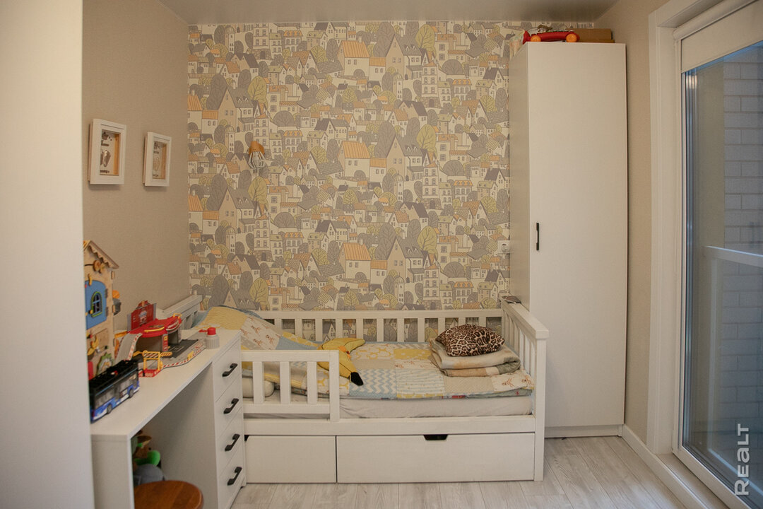 — Так как двоим детям 3 и 6 лет, считаю, что в их комнате допустимо всё. Выбрали отдельные кровати, чтобы у детей был свой уголок. Здесь же есть место для подготовки к урокам. Комната получилась яркой, но им мало. Сыновьям кажется, что в домиках на обоях недостаточно деталей, поэтому не стесняются добавлять им реалистичности, — показывает рисунки Диана.