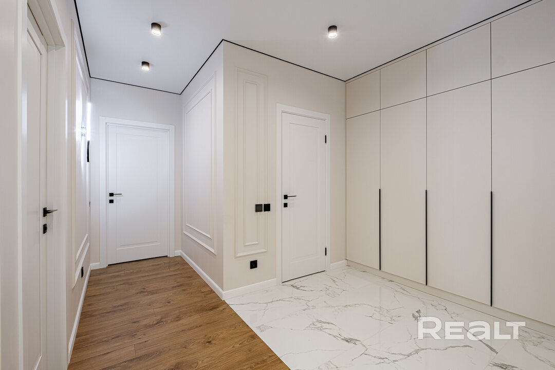 Квартира располагается в семиэтажном доме по улице Виталия Цвирко, 102. Его возвели в 2025 году. Жилье находится на пятом этаже и занимает 66,5 м² — это евротрешка.