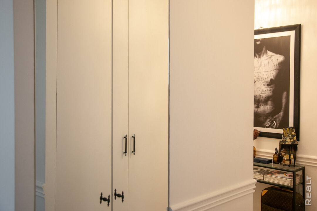— Мы рассматривали разные варианты. Предложений много, но что-то не подходило по расположению, что-то по цене. Потом попалась эта двушка. Ее продавали, можно сказать, за копейки по сегодняшним меркам. По площади она небольшая: всего 30 квадратных метров. Тут была маленькая кухня, такие же комнаты, одна из них — проходная. Квартира — угловая, что идеально вписывалось в мой проект. И как в мечтах — французский балкон и потолки в 3,25 метра. Вишенкой на торте стало расположение. До Немиги мне идти 30 минут. Еще ближе находятся две станции метро разных веток.