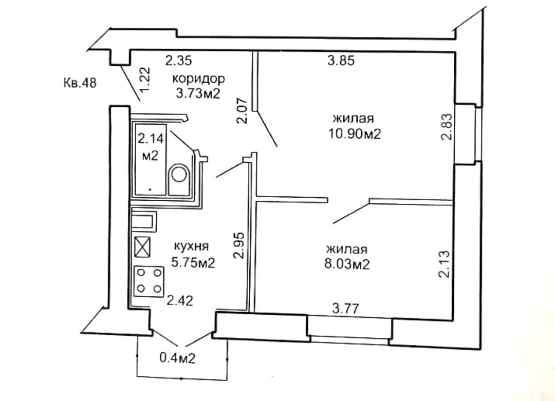 Комната, которая в изначальном варианте была проходной, стала отдельной. Она же потеряла чуть больше четырех квадратов. Сейчас тут обустроена спальня.