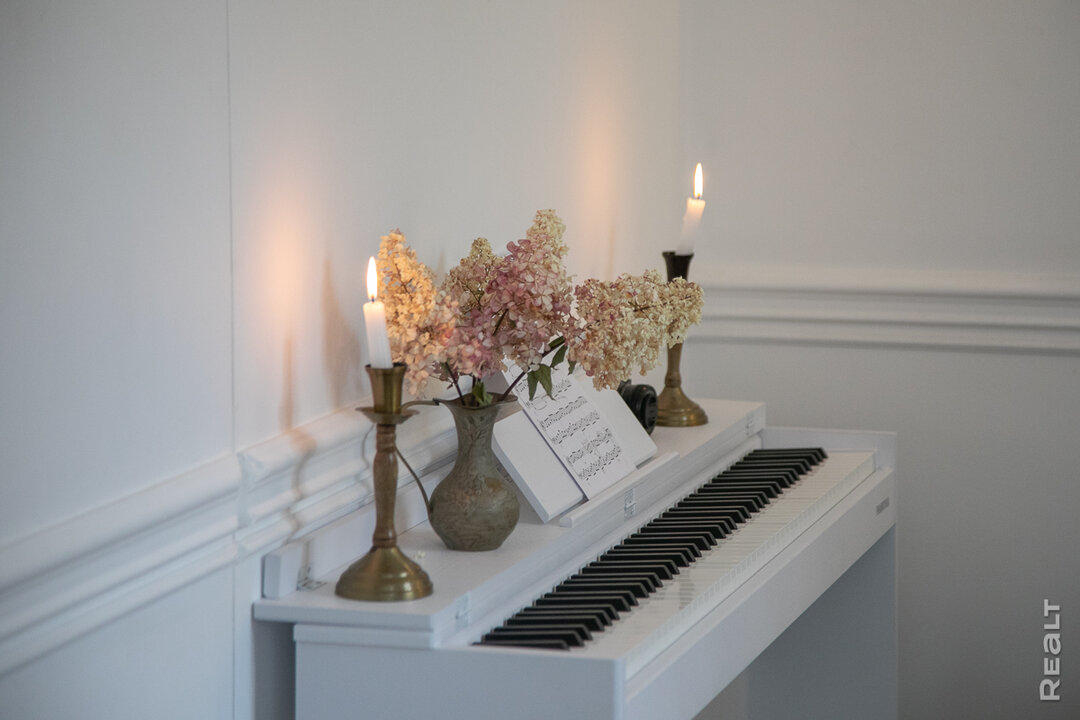 Большинство мебели было сделано на заказ: шкафы, кухня, остров, диван у пианино. Много декоративных вещей покупалось на маркетплейсах.