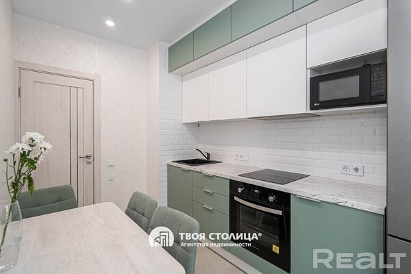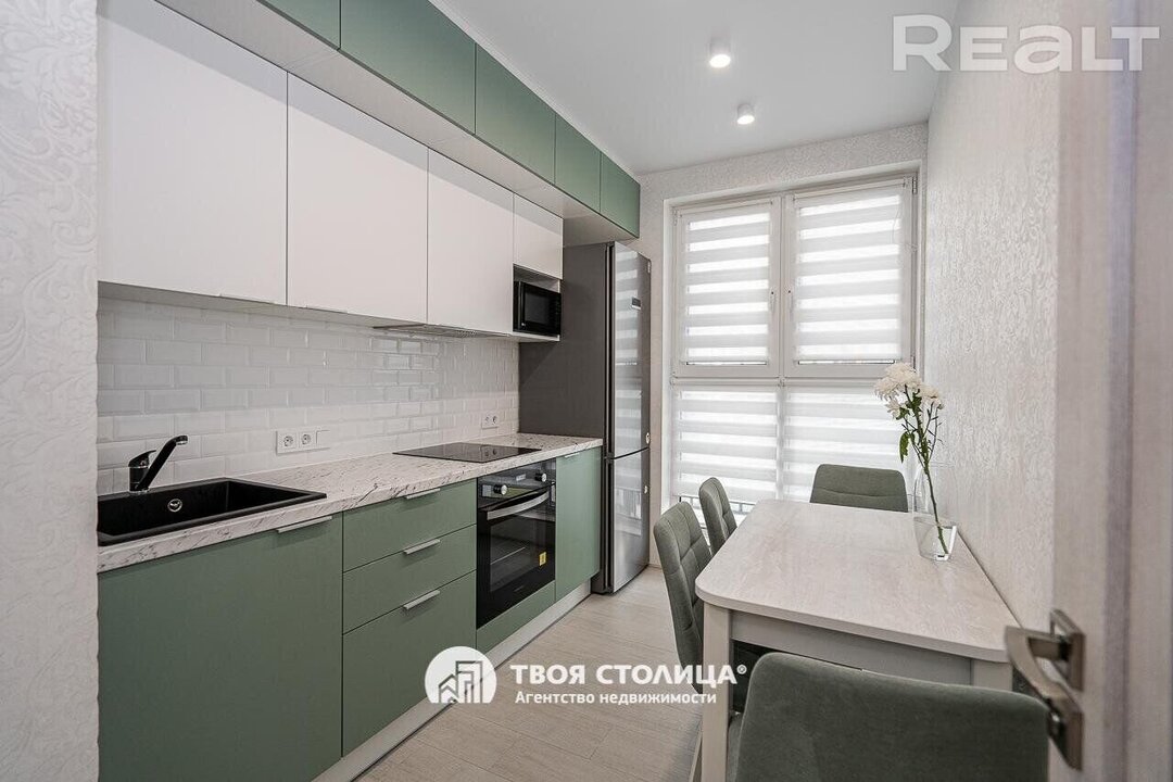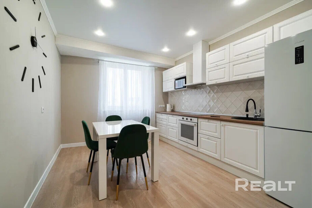 Есть в нашей подборке и полноценная двушка в Минск-Мире. Хотя планировки с изолированной кухней в этом ЖК попадаются очень редко, мы нашли именно одну из таких. Квартира расположена на восьмом этаже 16-этажного дома «Чикаго» в квартале «Северная Америка». Дом построен в 2022 году.