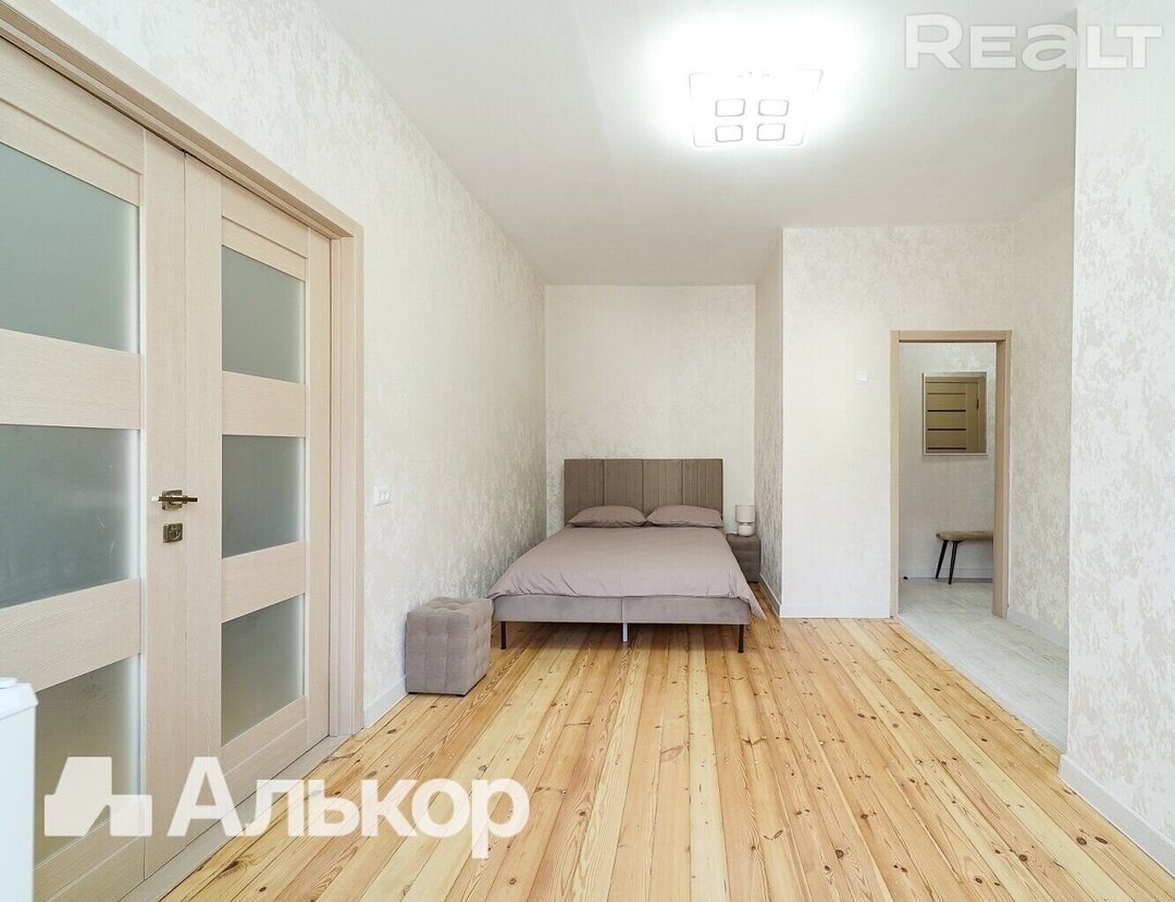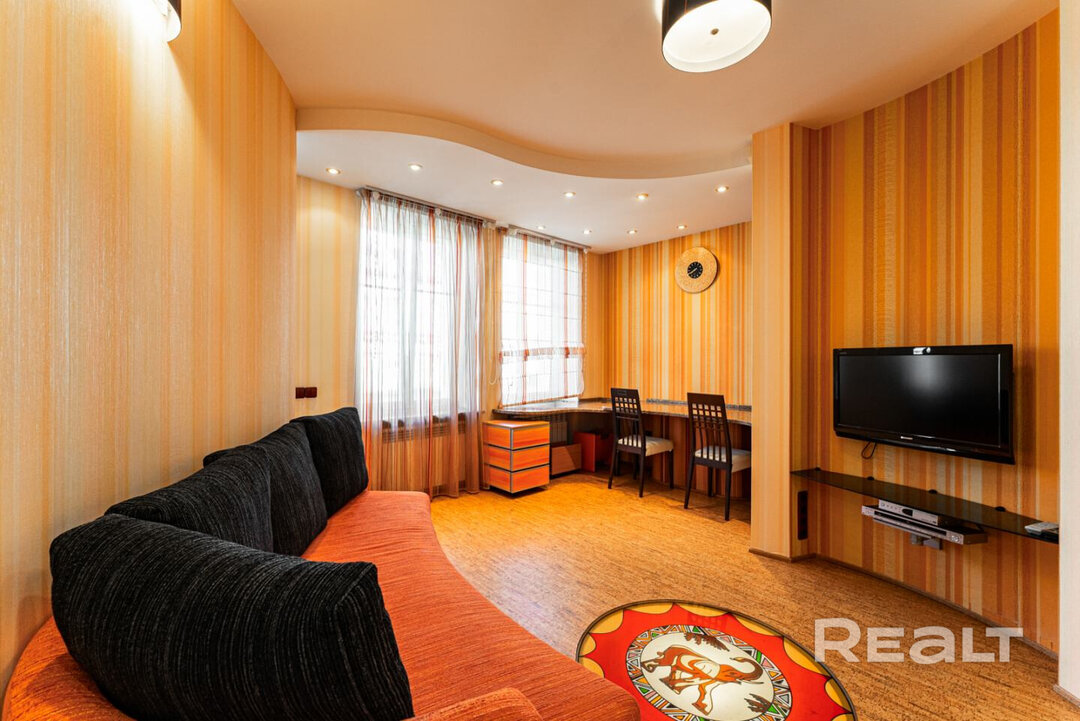 Например, в сталинке 1958 года постройки напротив продается трехкомнатная квартира. Дом является исторической ценностью и охраняется государством. Общая площадь трешки — 72,1 квадрата, из них жилая — 46,5 метров квадратных. В квартире произведен полный демонтаж, включая межкомнатные перегородки, а также выполнен комплексный капитальный ремонт. Стильный интерьер был разработан по проекту дизайнера, входящего в топ-10 дизайнеров Беларуси. В квартире окна выходят на две стороны, там установлены тройные стеклопакеты, которые дают возможность полностью уйти от городского шума. Также есть кондиционер. Кроме того, жилье полностью укомплектовано всей необходимой мебелью и бытовой техникой. Хотят за нее 179 тысяч долларов (2 483 доллара — за квадрат).