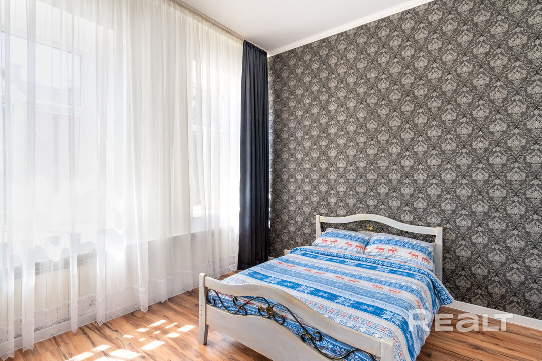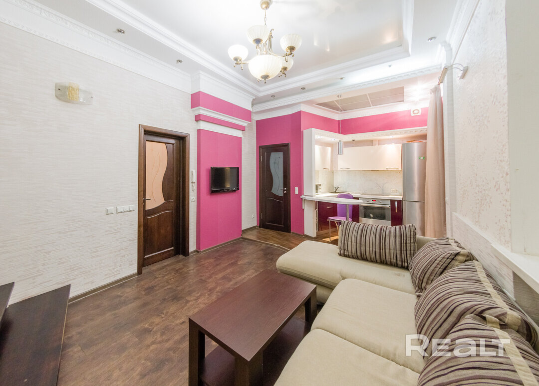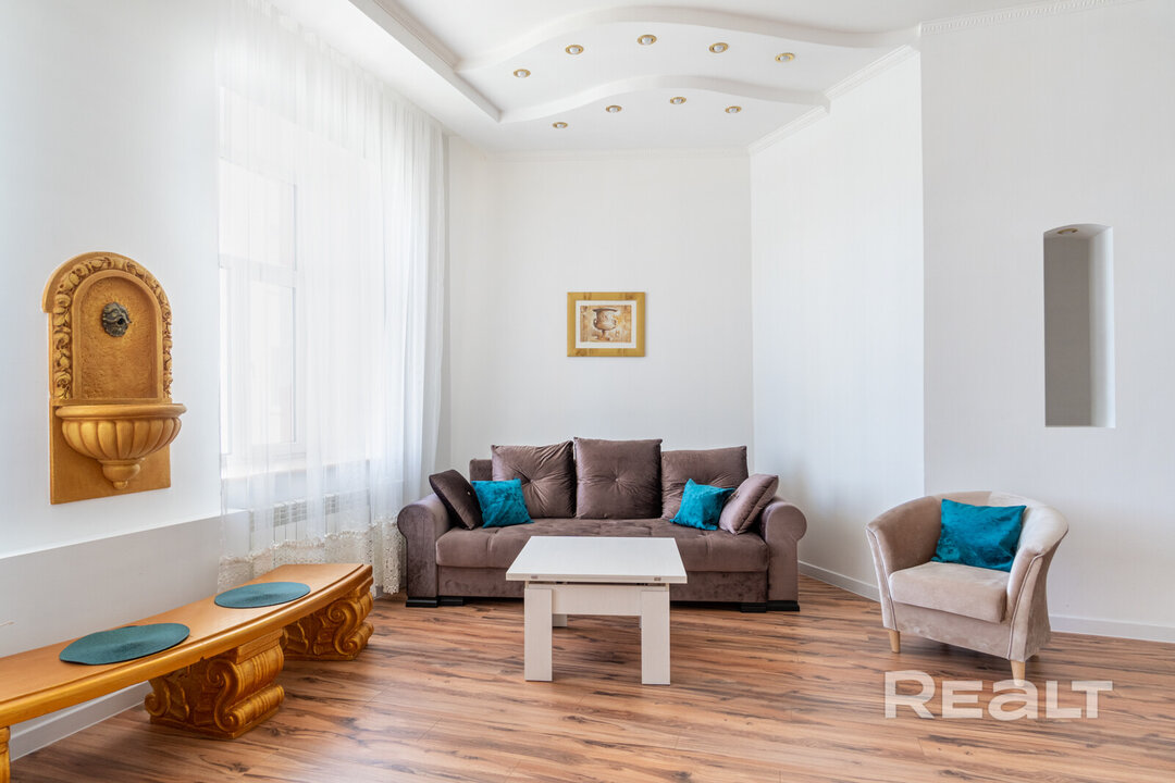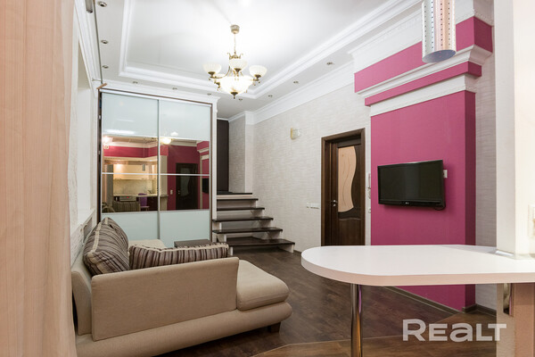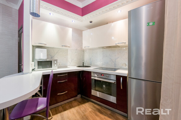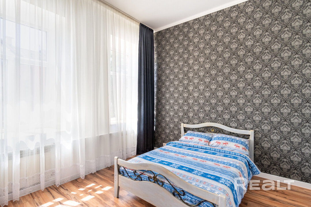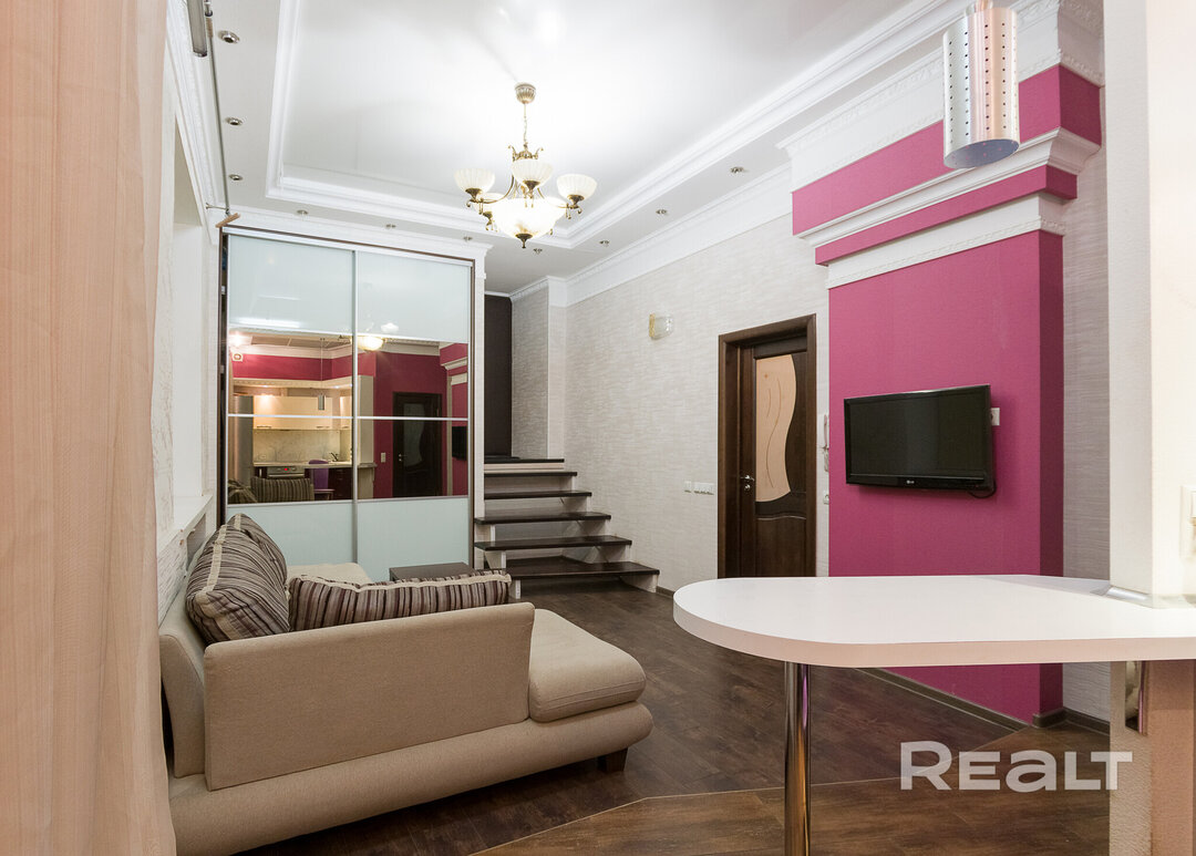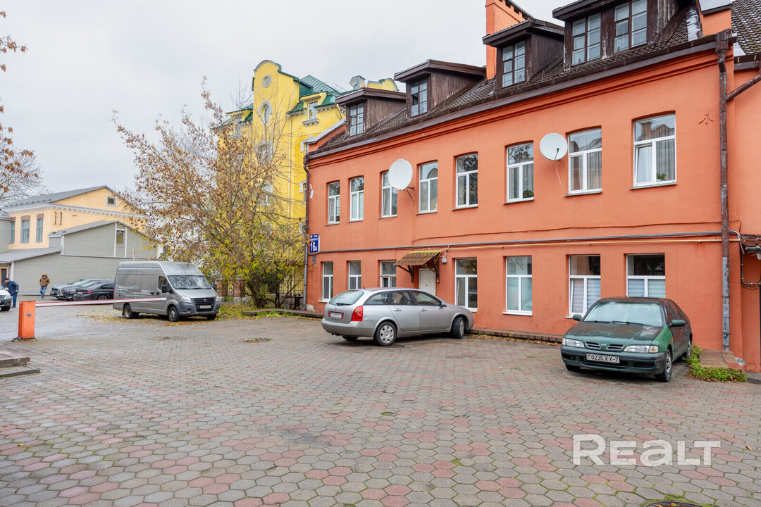 Дом отличают высокие потолки — 3,15 метра. Окна выходят на тихий зеленый благоустроенный двор. Подчеркивается, что при капитальном ремонте дома произведена замена коммуникаций. Про окружение и говорить не приходится: рядом можно найти множество магазинов, торговых центров, ресторанов, кафе и многого другого. Неподалеку находится железнодорожный вокзал, станции метро «Первомайская» и «Купаловская», набережная реки Свислочь с велодорожкой и местами для отдыха. Продают квартиру за 89 тысяч долларов (2993 доллара — за метр).