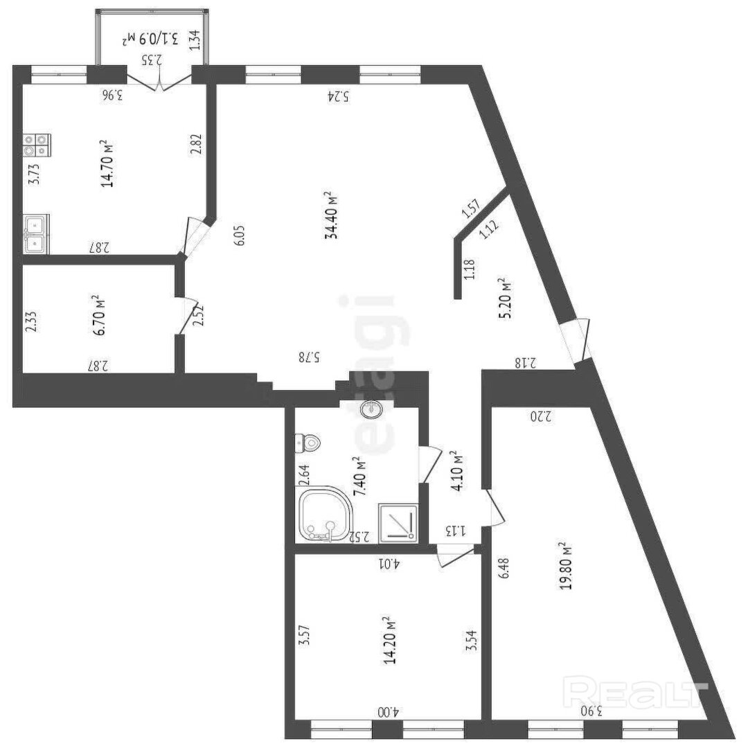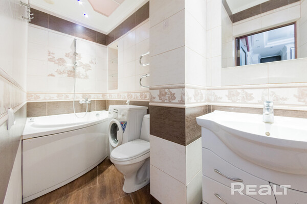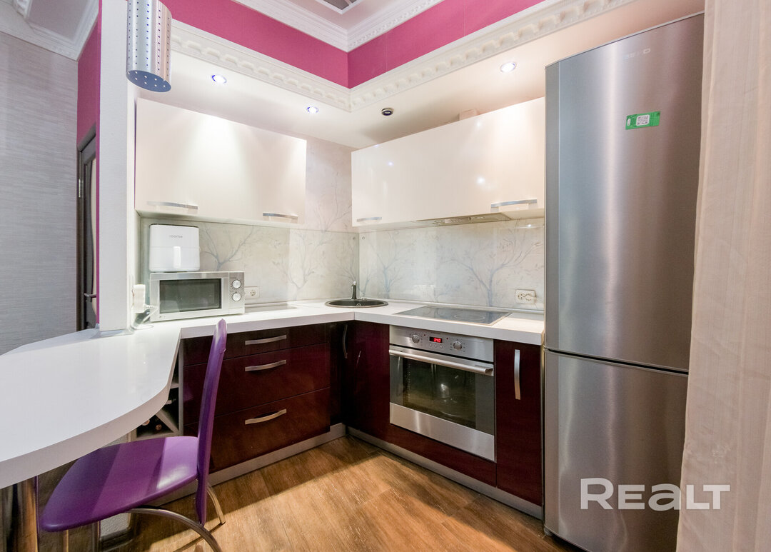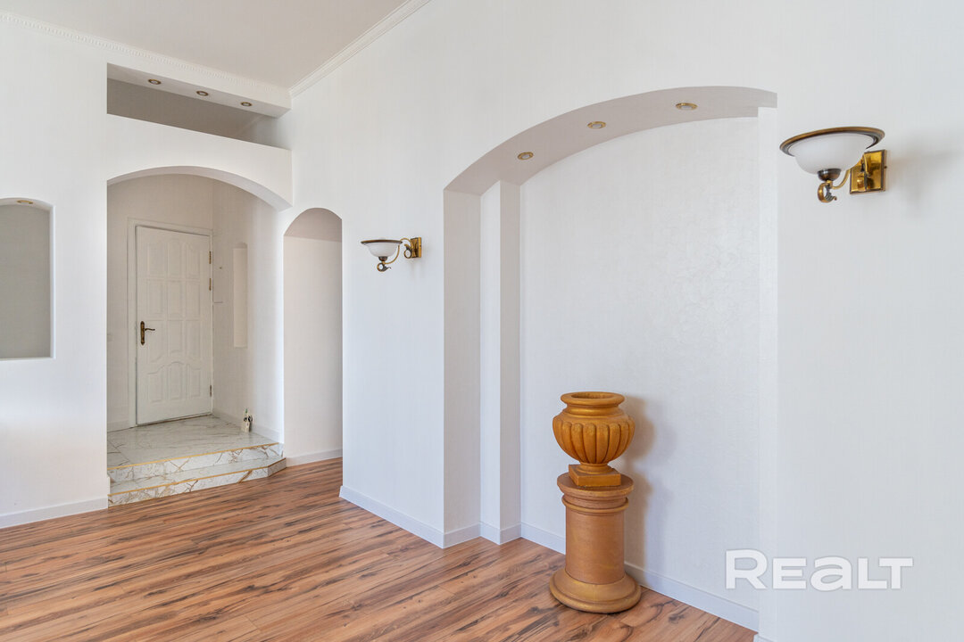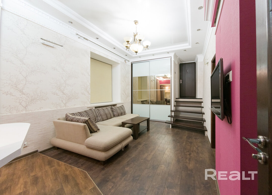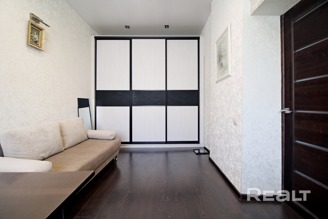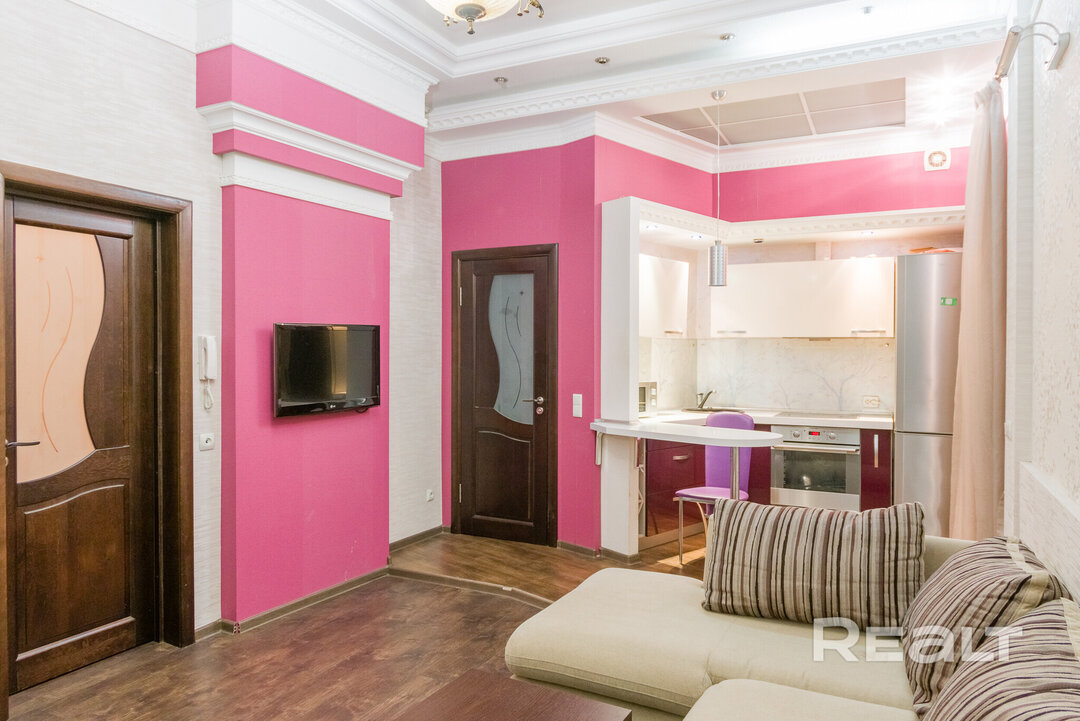 Дом отличают высокие потолки — 3,15 метра. Окна выходят на тихий зеленый благоустроенный двор. Подчеркивается, что при капитальном ремонте дома произведена замена коммуникаций. Про окружение и говорить не приходится: рядом можно найти множество магазинов, торговых центров, ресторанов, кафе и многого другого. Неподалеку находится железнодорожный вокзал, станции метро «Первомайская» и «Купаловская», набережная реки Свислочь с велодорожкой и местами для отдыха. Продают квартиру за 89 тысяч долларов (2993 доллара — за метр).