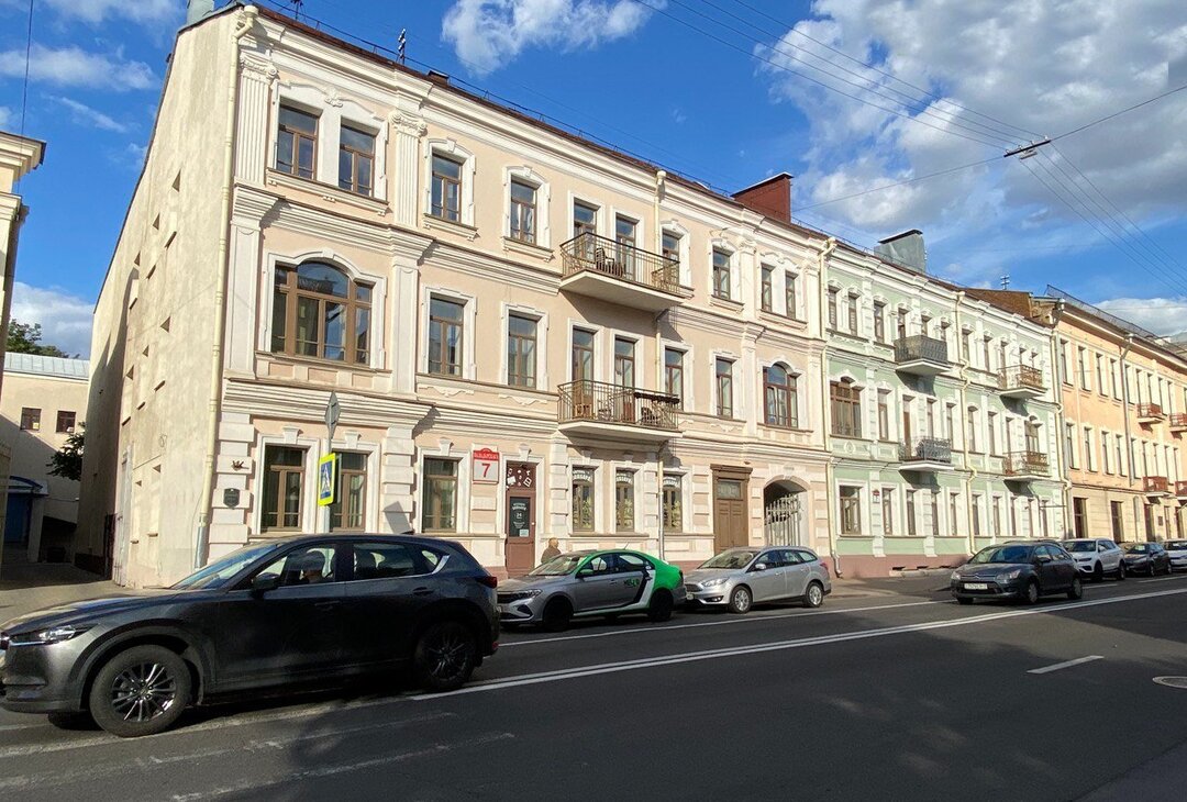 Следующий вариант — двухкомнатная квартира на Володарского, 7. Этот кирпичный трехэтажный дом вместе с соседними зданиями возвели в конце XIX — начале XX веков. Постройка — яркий пример гражданской архитектуры тех лет. Сегодня здание является памятником историко-культурного наследия.