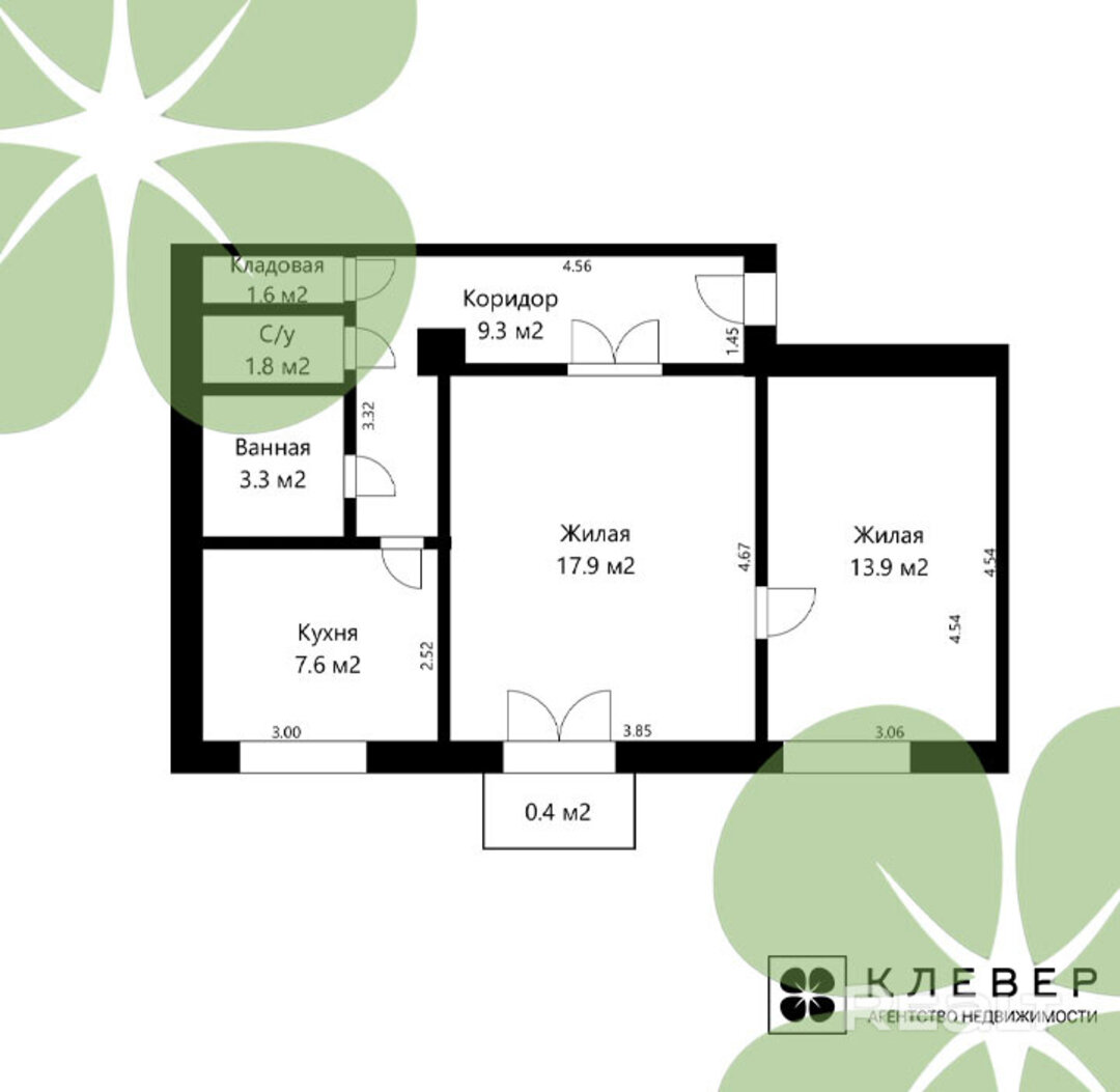 Речь идет о квартире в пятиэтажном доме на Румянцева, 14. Его возвели в 1958-м, а в этом году провели капремонт. Жилье располагается на последнем этаже и занимает 55,4 м². На кухню выделено 7,6 м².