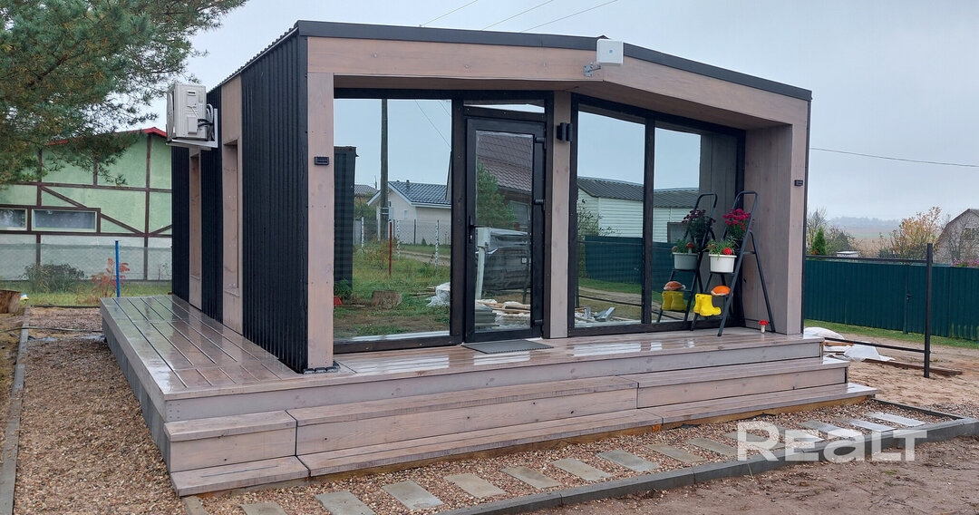 243В СТ в Смолевичском направлении продается миниатюрная каркасная дача. Она полностью готова к отдыху не только в летом, но и круглый год. Внутри все обустроено как в квартире-студии, а цена при этом почти в два раза ниже — всего 33 тысячи долларов. Показываем дом.