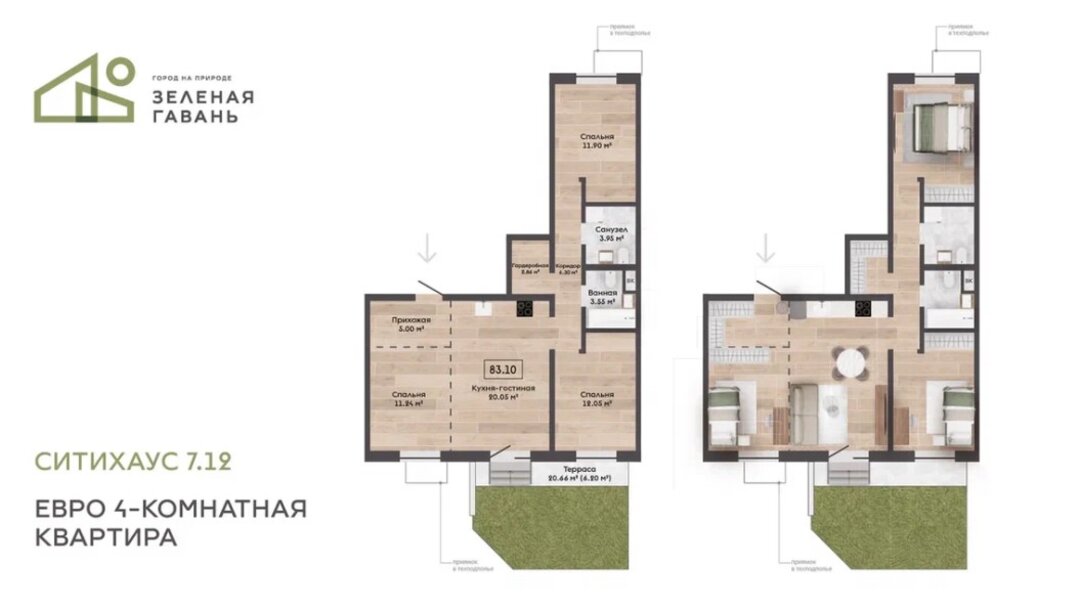 От 1394 долларов. В Зеленой Гавани предлагают квартиры с террасами в новом доме