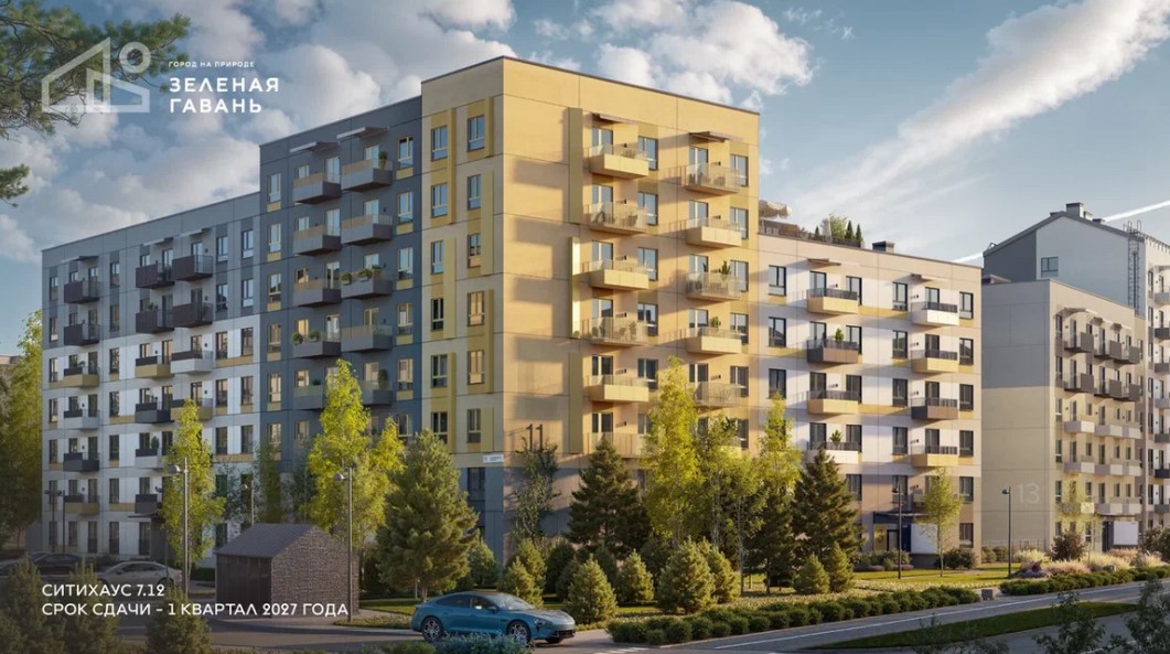Ситихаус 7.12 расположен в квартале «Земляничная поляна». Он будет стоять в уютном центре квартала и примыкать к зеленому коридору. В паре минут ходьбы — лесной пляж, магазины, кафе и аптека.